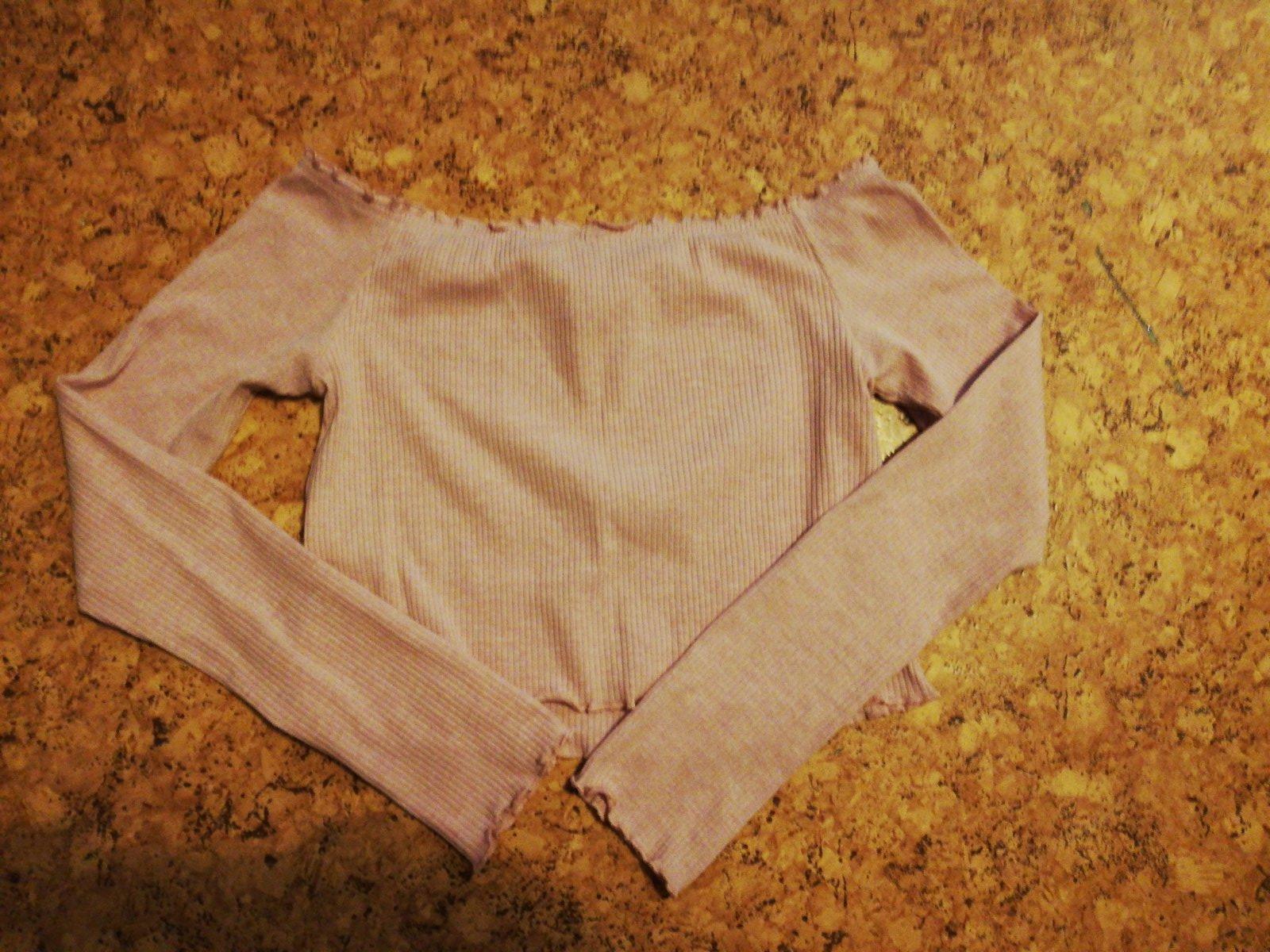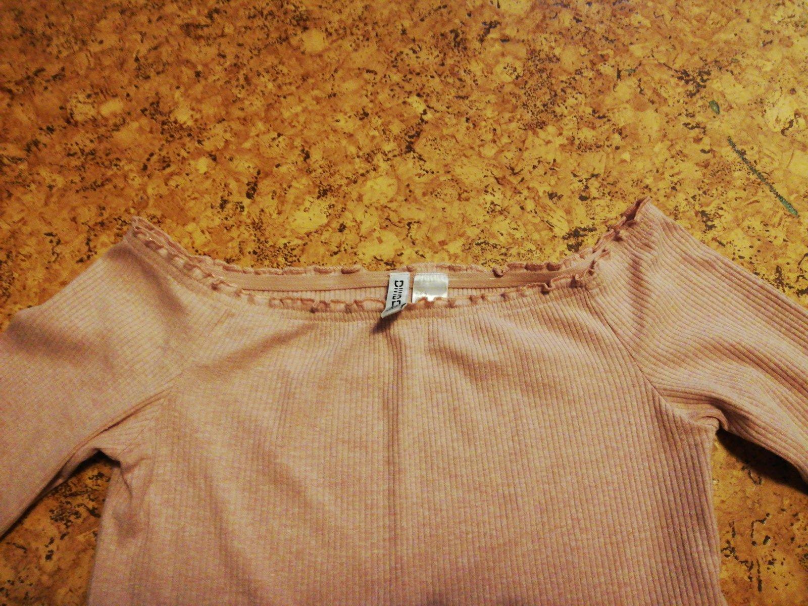 Krátke dámske tričko do pása staroružovej farby. Materiál - 53%ba/38pes/9%elastan.
