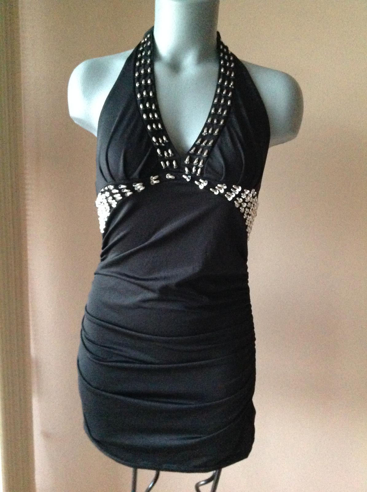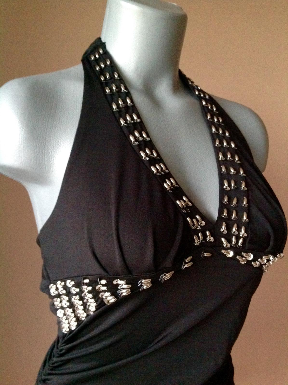 Krasny pruzny top alwbo saty zdobeny koralkami a striebornymi flitrami na boku riaseny ,v top stave,velkost sadne na 36/38,nie je udana