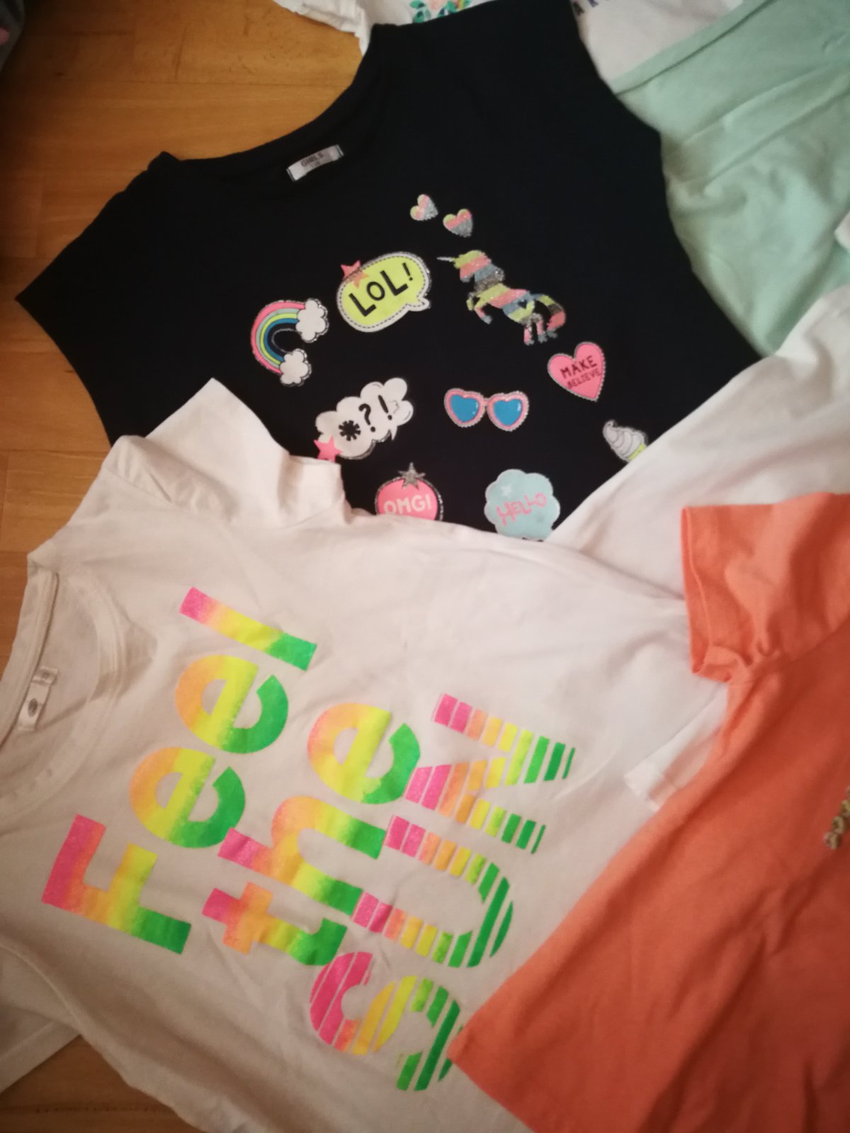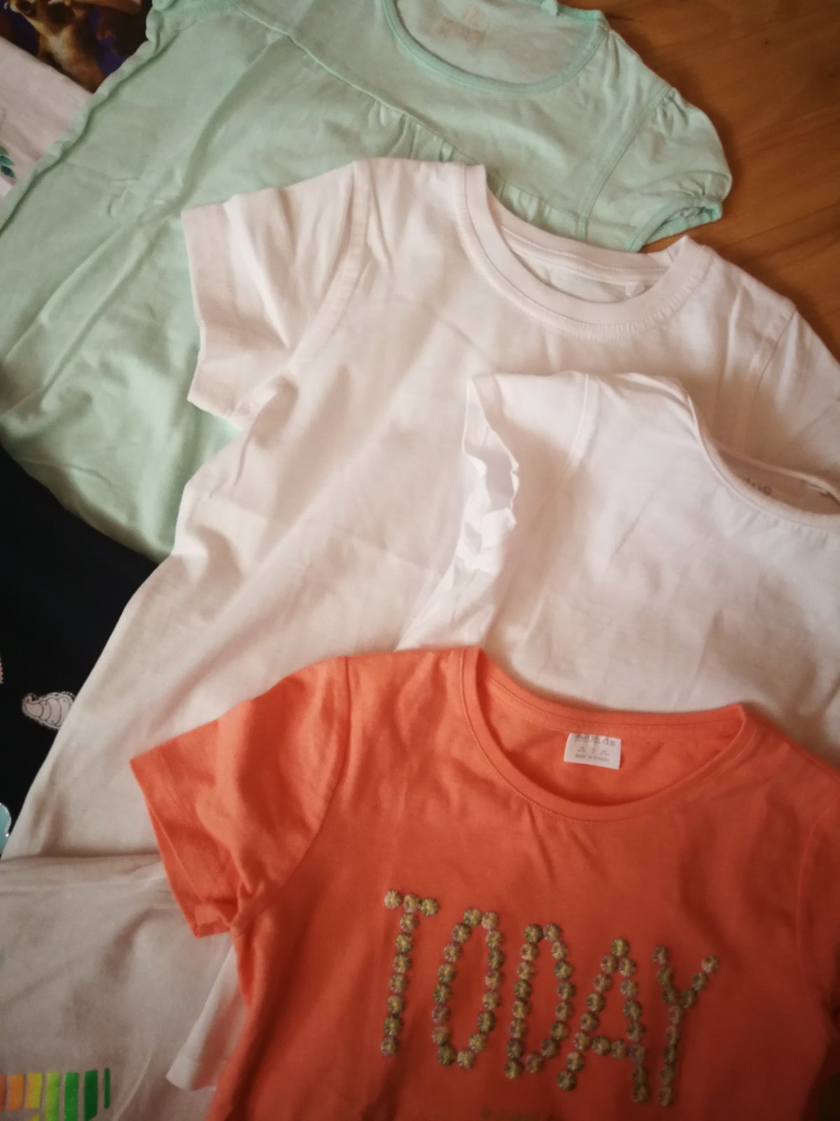Tričká pre slečnu, niektoré oblečené asi dvakrát, vel. Uvedena 122-128,..cena za 1 ks 1,50. €..