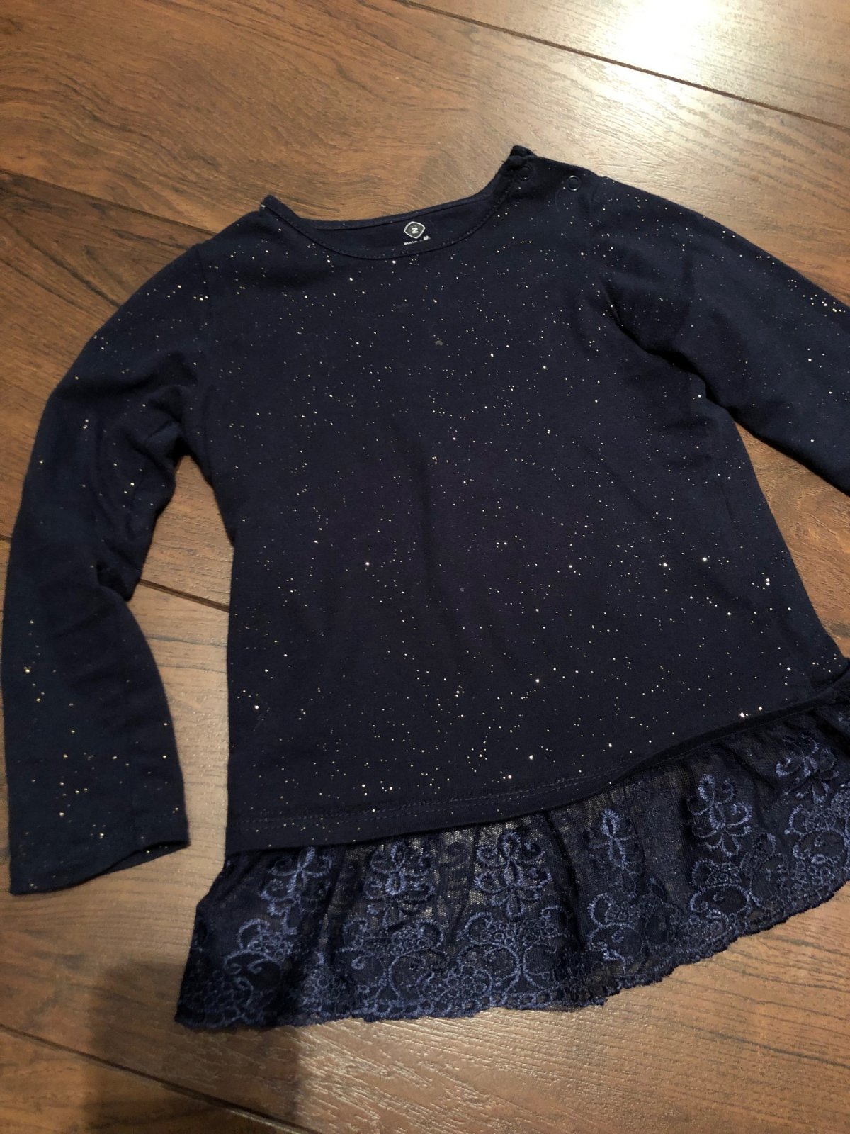Krásne tričko s jemnými trblietkami, dolu s čipkou, 1x vzaté, top stav, veľkosť 98, šírka 28-29 cm, dĺžka 42 cm, kupované vo Florencii za 39 eur