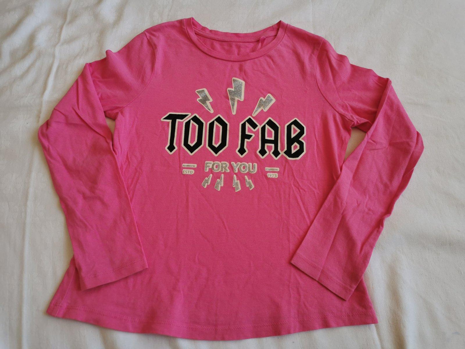 Predám tričko, veľ. 134/140, dĺžka 45 cm, pod rukávmi šírka 35 cm, rukáv 46 cm. Zloženie: 100 % bavlna,. Nepoškodené, nežmolkové. Cena 2 € + poštovné resp. osobný odber.