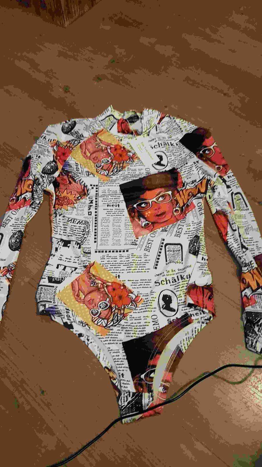 nadherne elasticke body s potlacou . zapinanie v rozkroku, prijemny makkucky a elasticky material. velkost pisana L ,ale kludne sadne aj na M a natiahne sa na L
