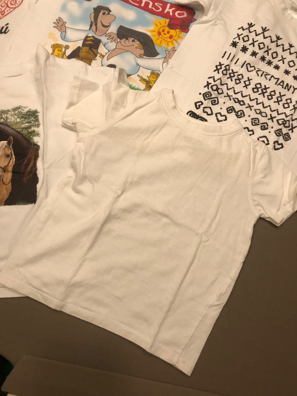 Trička v bielom prevedení so slovenským motívom. Naše obľúbené bavlnené trička na spanie. Veľkosti od 98-116. Cena 1ks = 4€, 2ks = 6€, nad 3ks = cena 3€ plus poštovné zdarma.