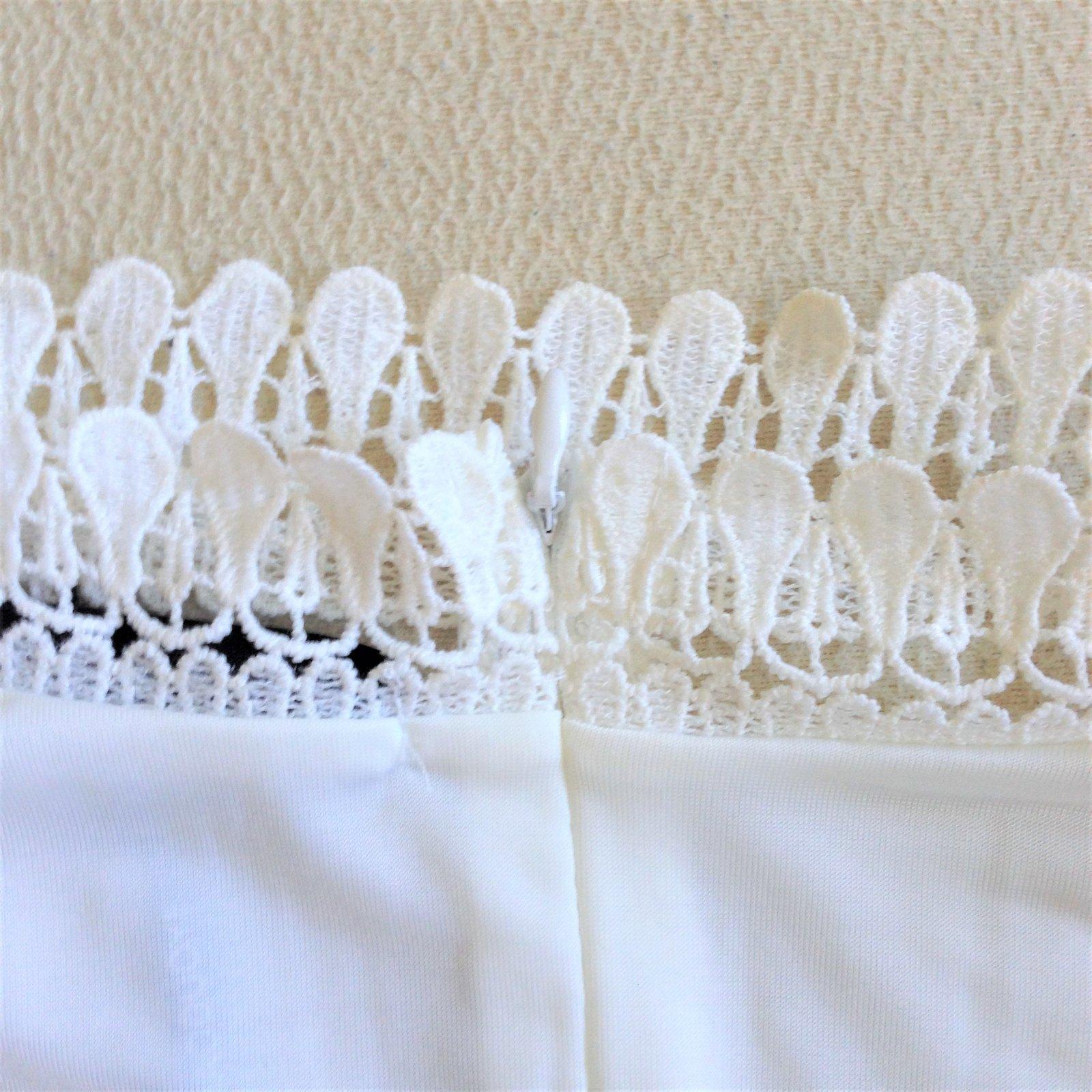 Nadherne biele sexy body - top s cipkovanym akoby choker nahrdelnikovym lemom okolo krku a nadhernou nasitou kvetinovou aplikaciou bez rukavikov na sirsie ramienka a zapinanim na skryty zips na zadnej strae, v spodnej casti bez zapinania.Material elasticky jemny polyester s kombinaciou cipky.