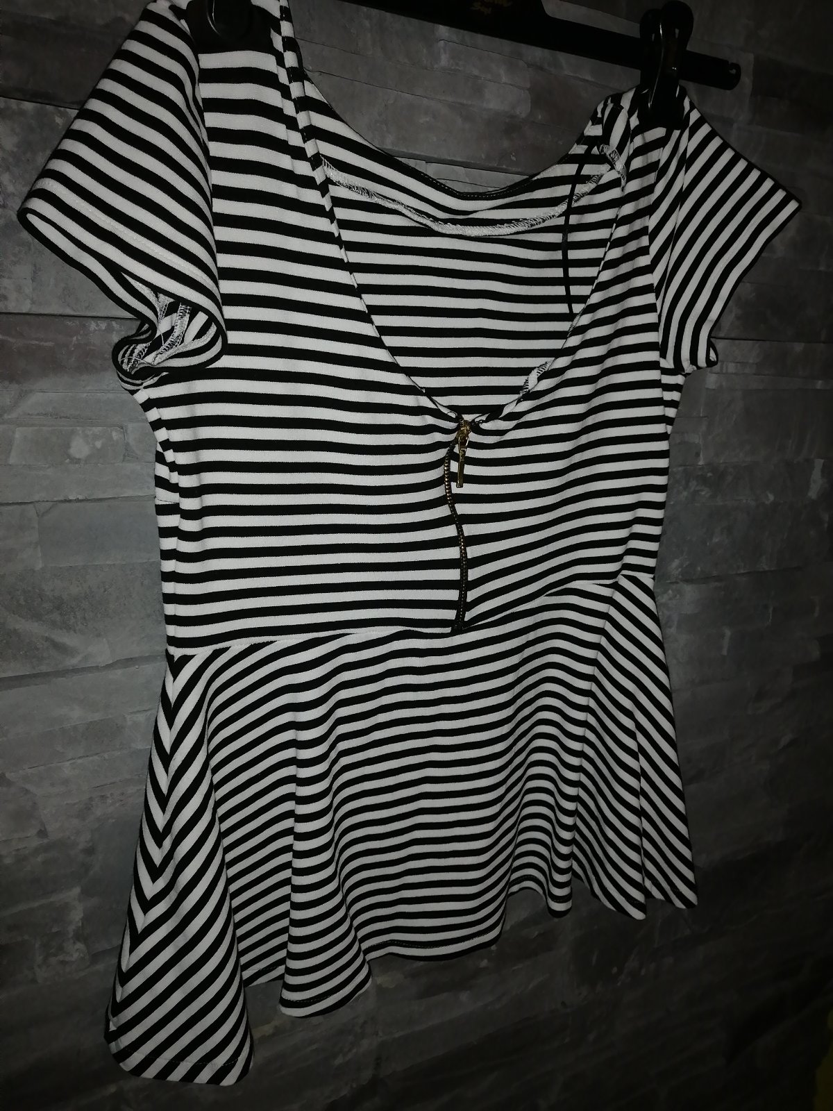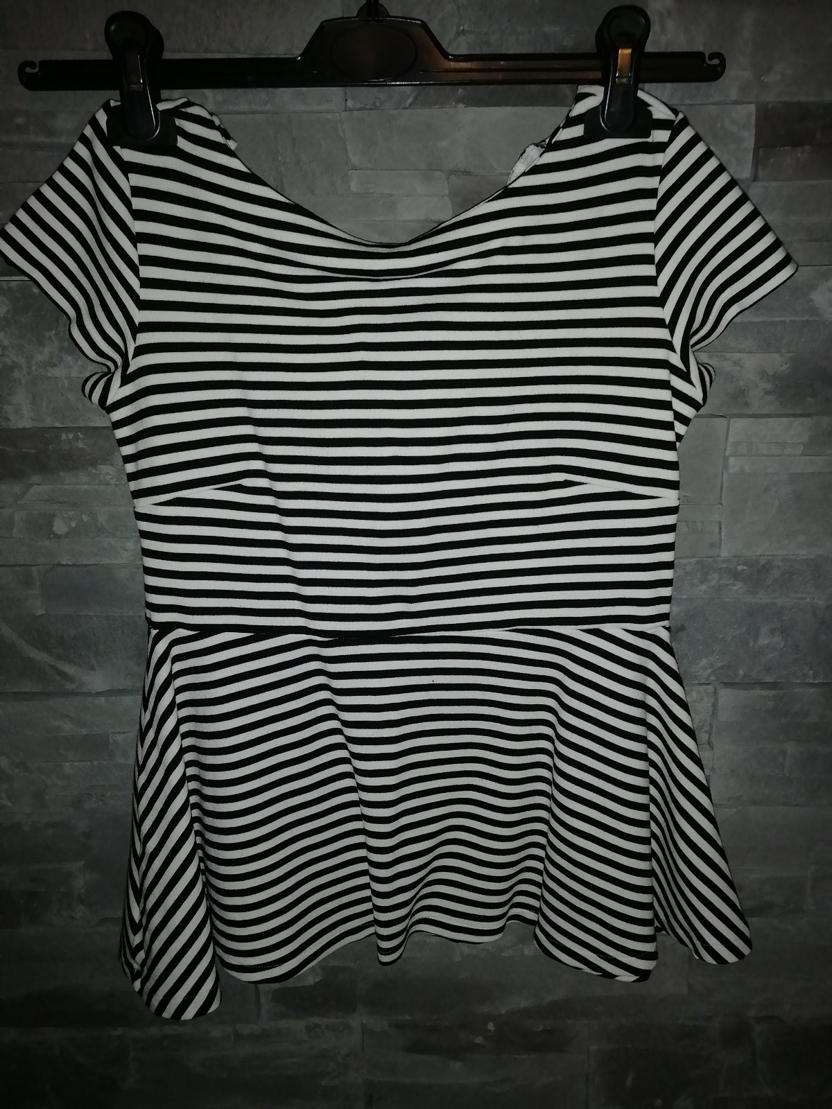 Krásny mierne elastický top v nesmrteľnej kombinácii čiernej a bielej, vzadu hlbší výstrih, je bez poškodenia