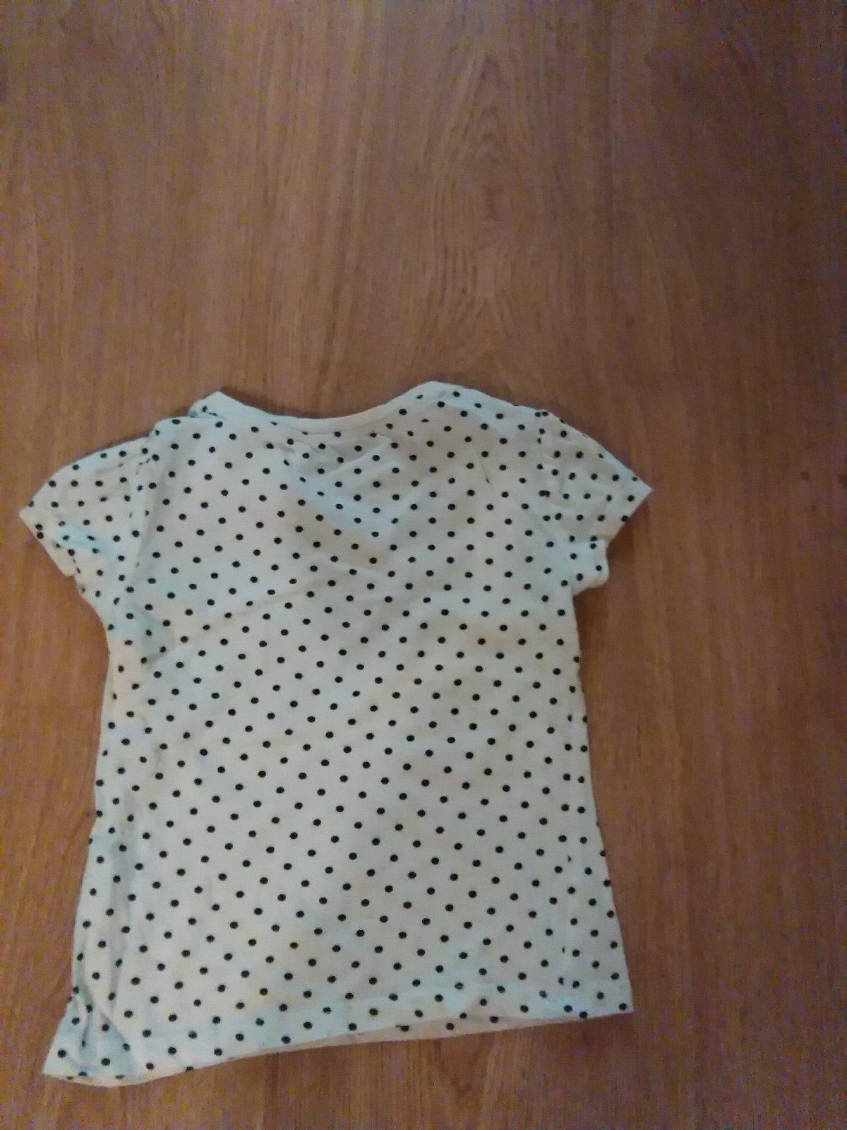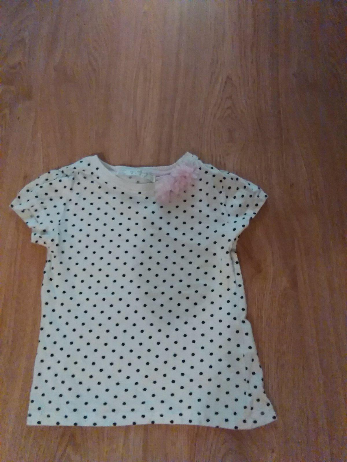 Moderne tričko, volnejsie a s gumickou na spodnom leme, nazov Bonjour je biely trblietavy, ako nove. Pisu velkost 4-5r, ale kedze je modne kratšie, tak ho nosila ako 4rocna, aby jej nebolo kratke.