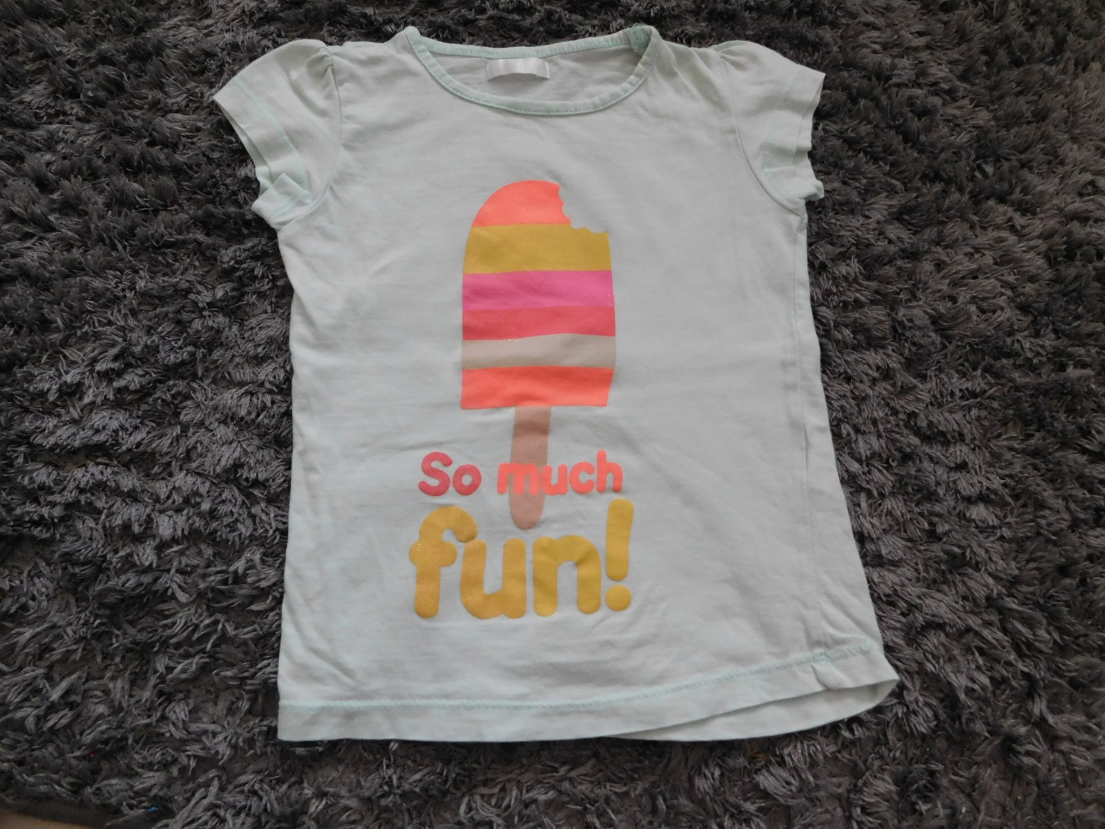 Používané letné tričko, príjemný materiál na nosenie. Pustená nitka (foto), nebráni používaniu. Veľkosť: 98-104, 2-4 roky. Rozmery: Šírka hrudníka: 33cm Dĺžka: 40,5cm.
