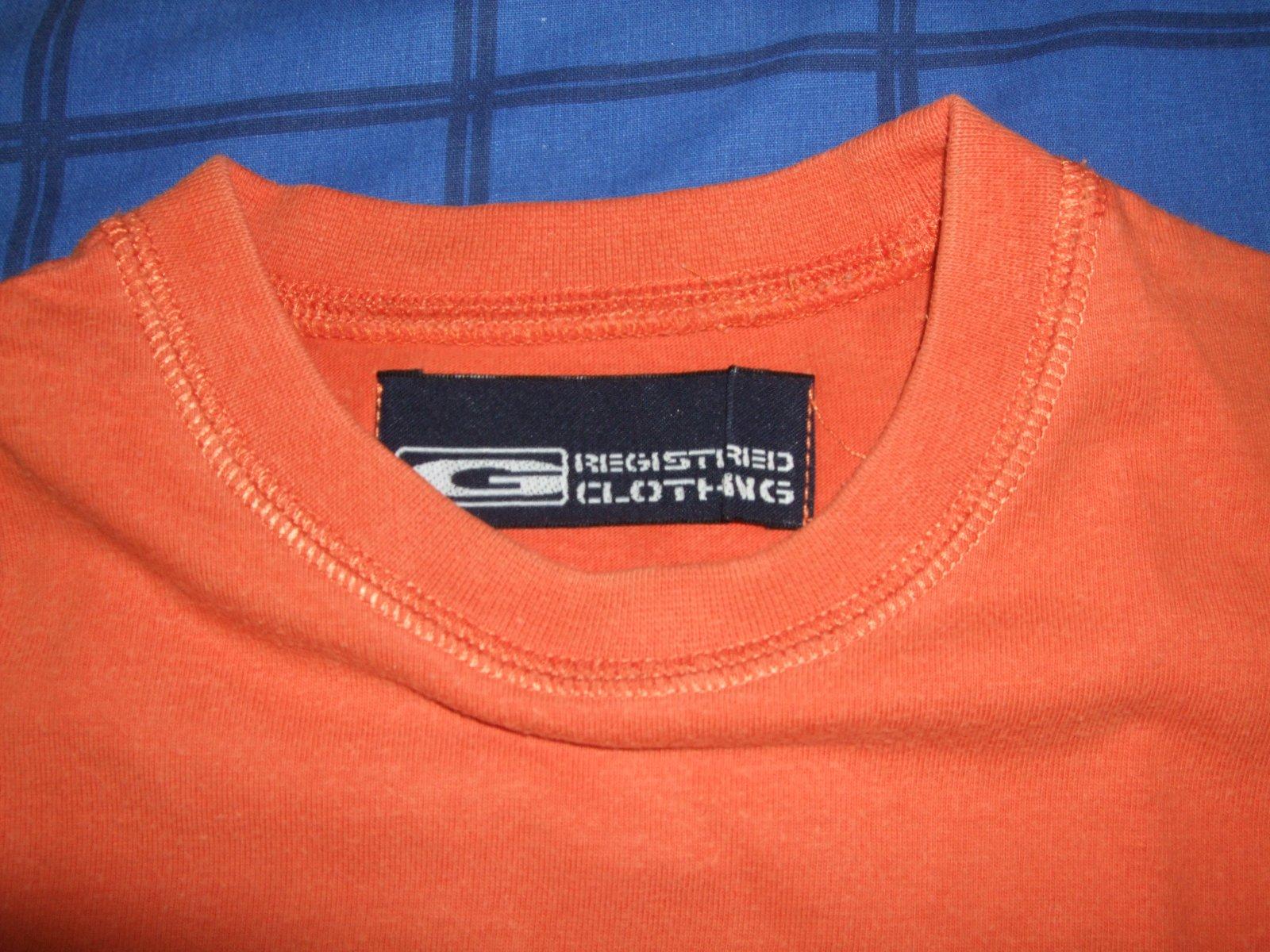Bavlnené tričko v oranžovo-modrej kombinácii. Pre chlapcov vo veku 4-5 rokov (104-110 cm). Približné rozmery sú na foto.