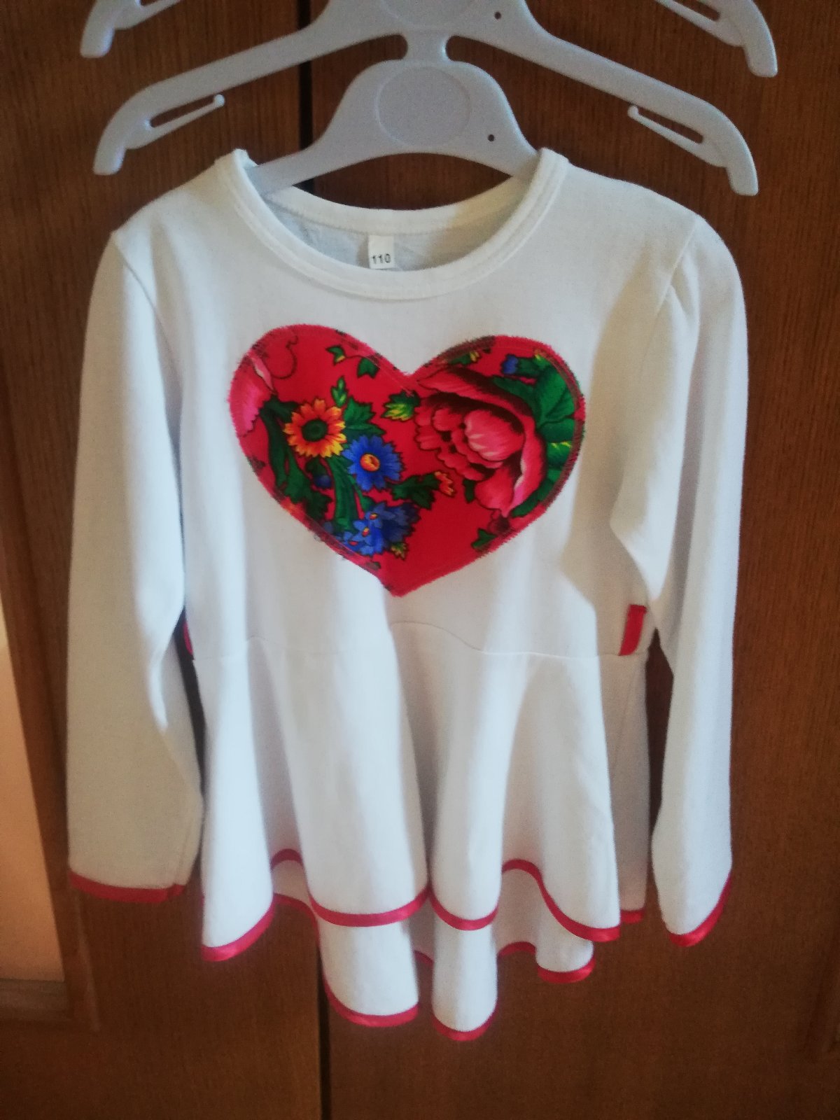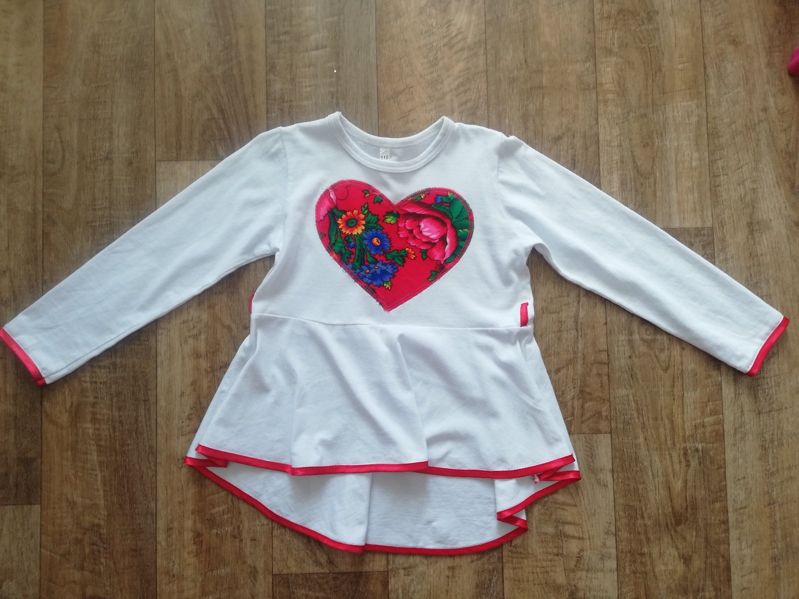 tričko s ľudovým motívom srdiečka, spodok trička lemovaný lesklou červenou stužkou, na bokoch sú príchytky na stužku ak by ste mali záujem si dať opasok