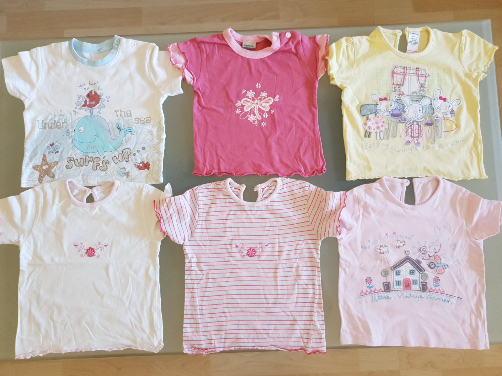 Tričko s krátkym rukávikom, zelené Cherokee. Pekný nosený stav, bez vád. Uvedená veľkosť 92, nositeľné okolo 18.mesiacov. Cyklaménové tričko s dlhým rukávikom pridávam ako darček, má zašitú malú di...