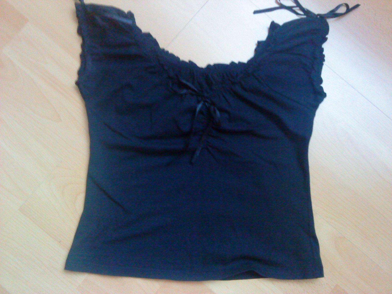 elastické tričko, málo nosené, nevyblednuté, nariasené rukáviky aj priekrčník, s ozdobnou stužkou. Velkosť približne 158/160. dlžka od pleca po spodok 47cm, šírka pod pazuchami 38cm, v páse šírka 35cm