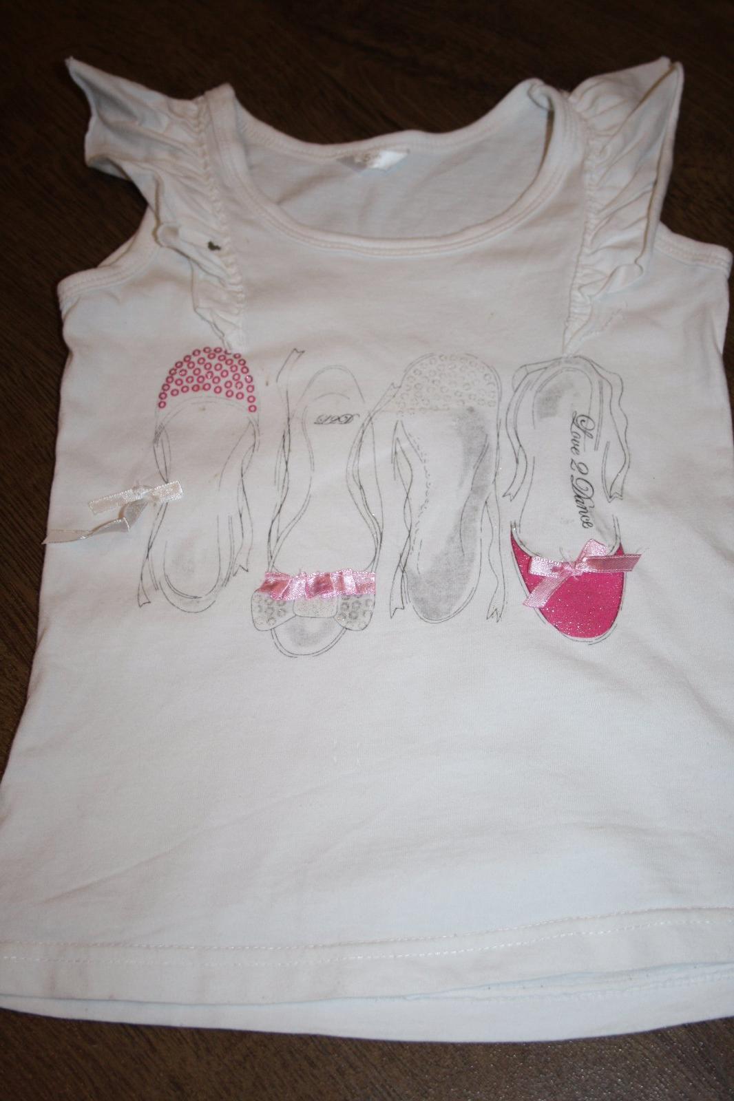 Dievčenské tričko bez rukávov s potlačou. Elastické. Materiál:95%bavlna,5%elastan. Značka Original Marines. Pre 4r. Nový tovar s visačkou. ROZMERY: dĺžka meraná vzadu:38,5cm,pod pazuchami meraná ...