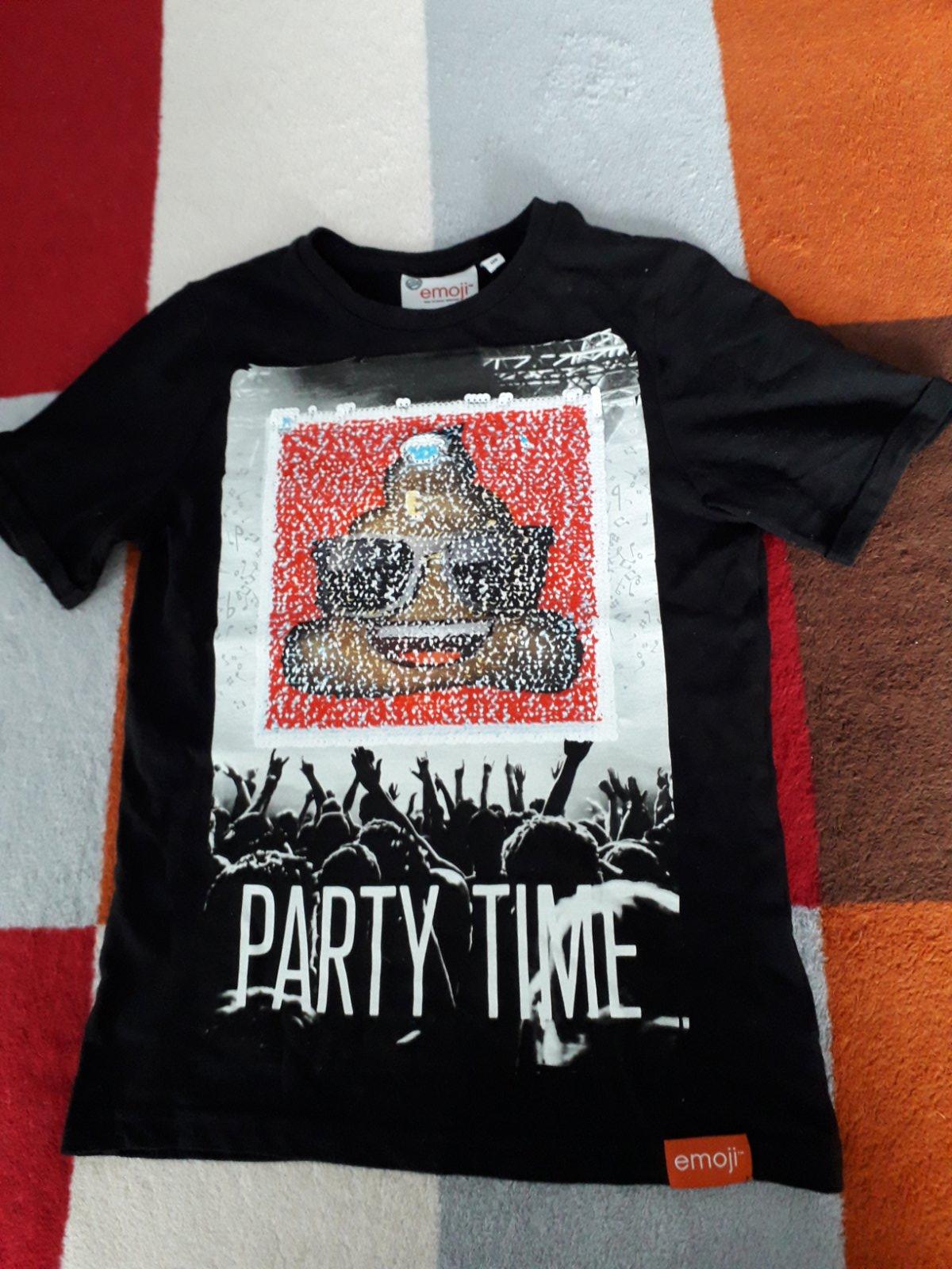 Predám 2x oblečené premieňacie tričko Emoji. Veľ. 128. Vzadu na tricku su male fliaciky hore pri ramene a dolu.Inak krasne.