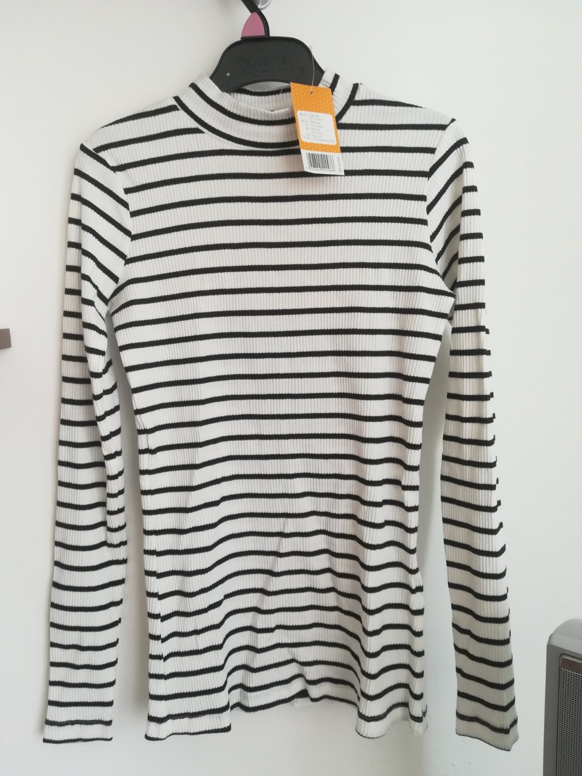 Aj ako dámske S, má malý stojacik tak niečo medzi tričkom a rolacikom.