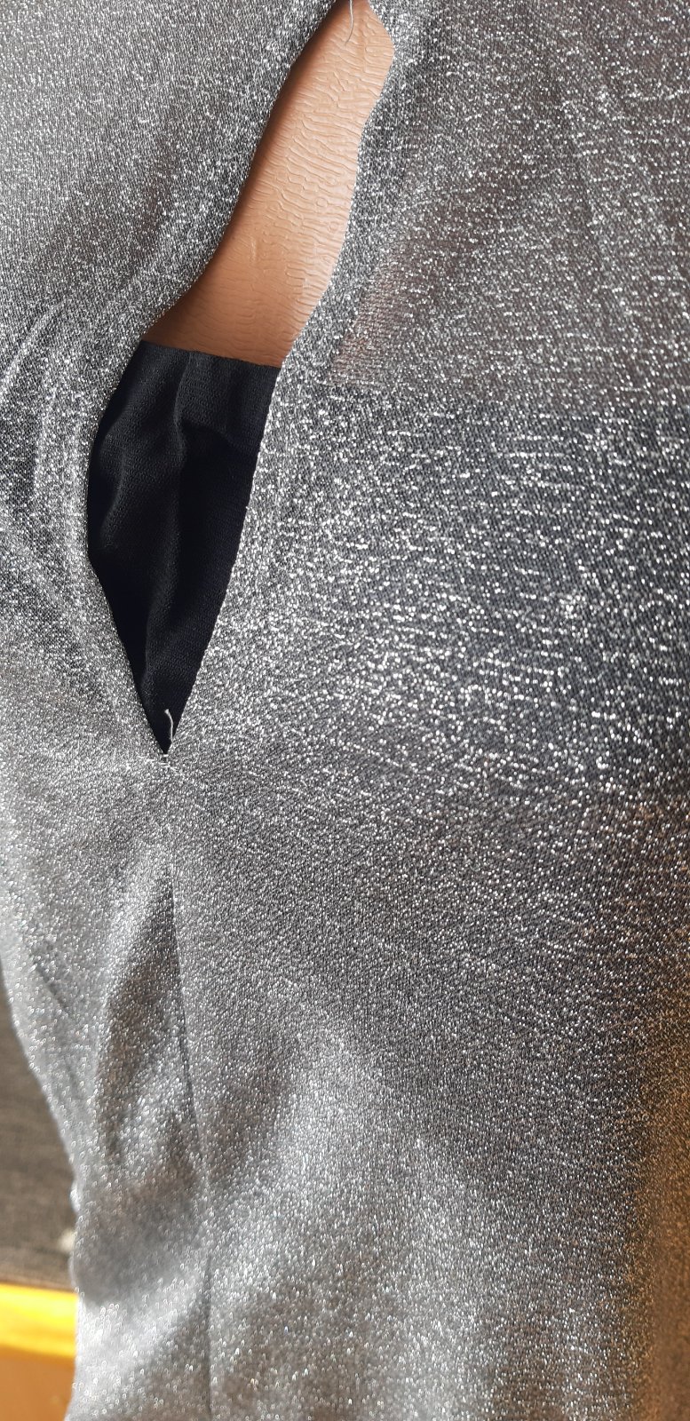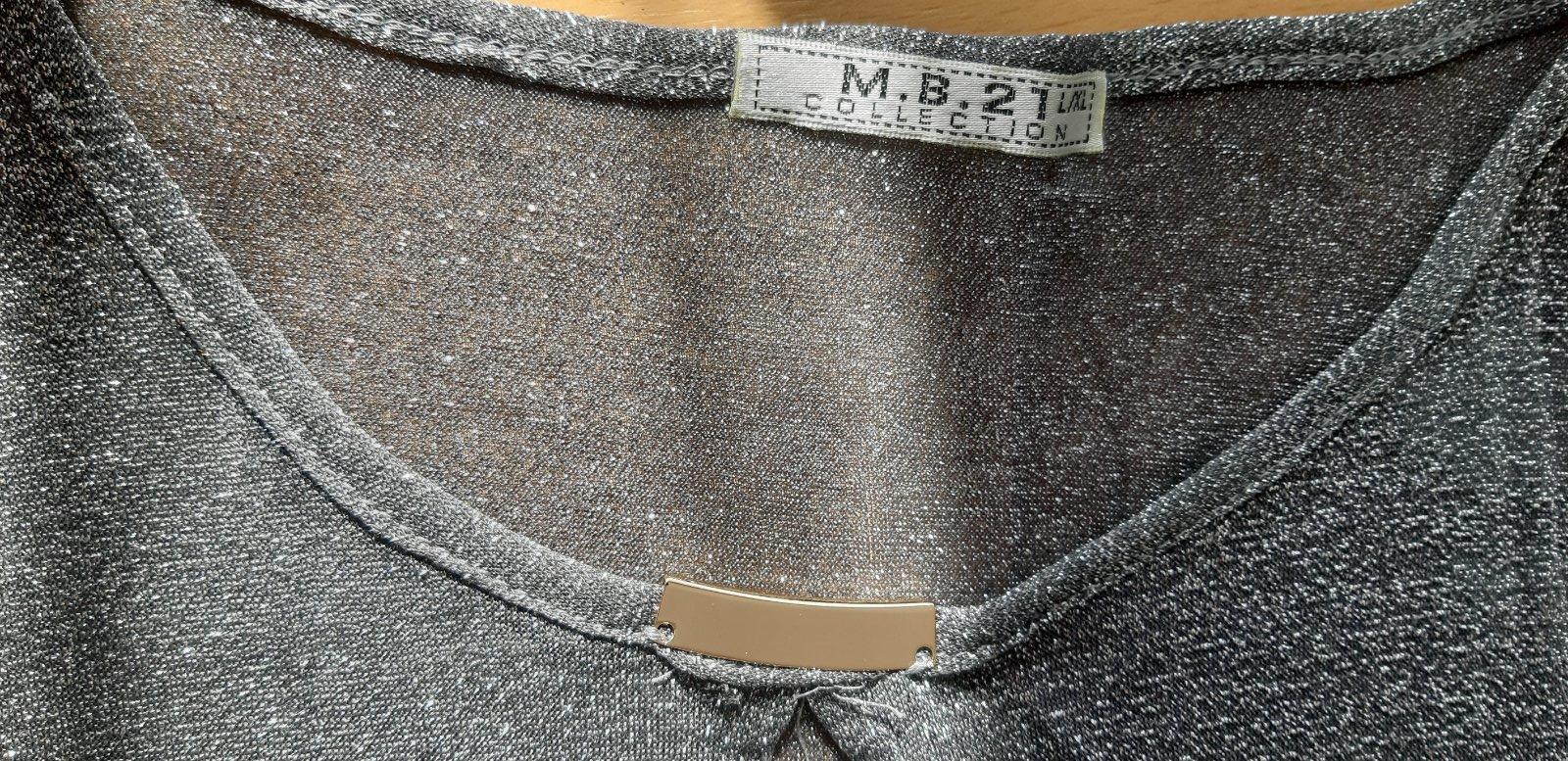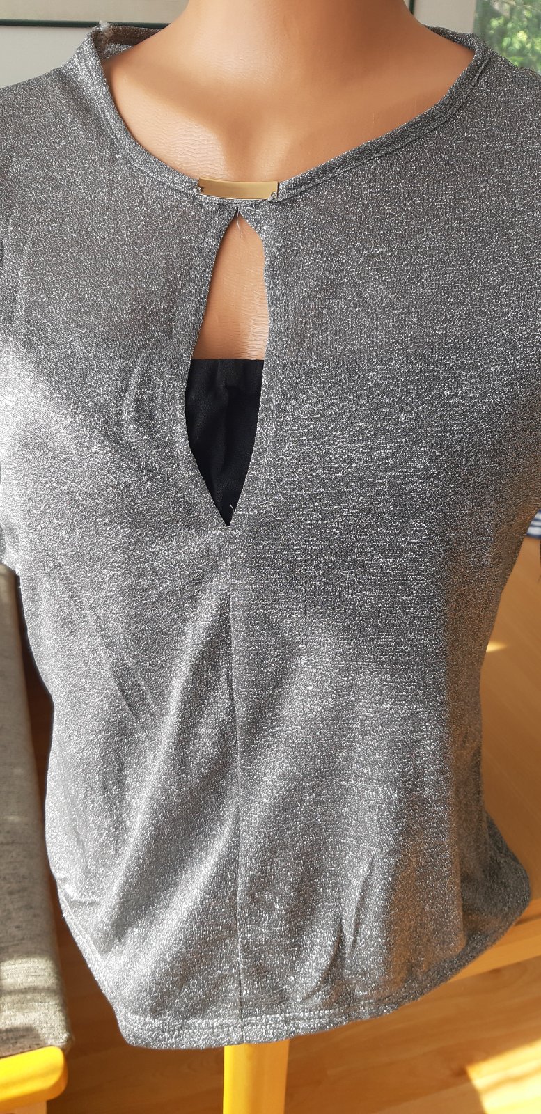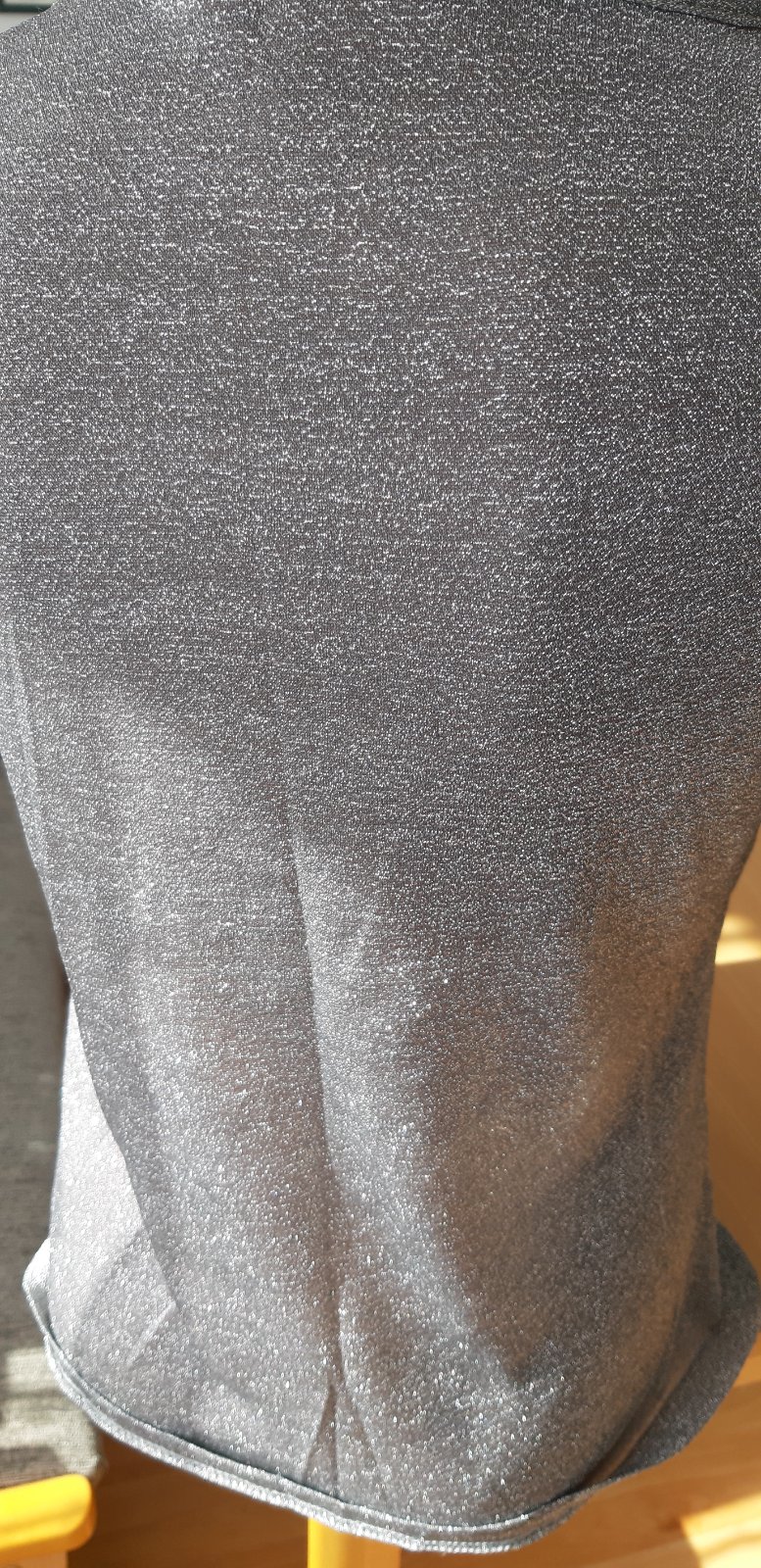 Pàrty tričko,raz oblečené,veľkosť L,sedi na M,strieborná farba s lurexom,dĺžka 57cm