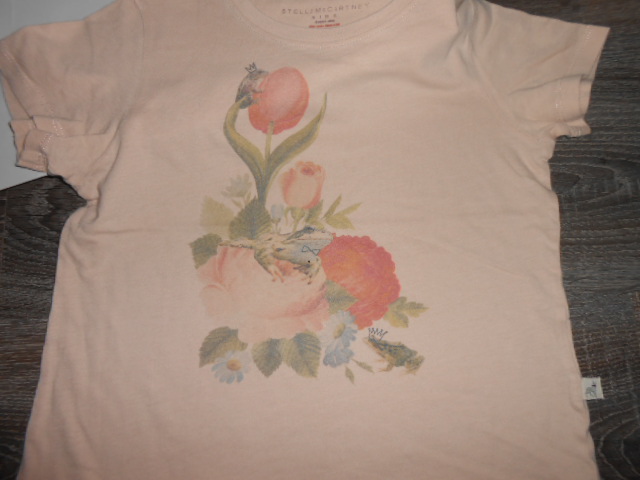3. Stella McCartney dievčenské tričko tejto drahej dizajnerskej značky, vo velkosti 4 roky, bez poškodení, mini znamky nosenia na farbe, dlžka je 39cm a širka v podpazuší je od 34x2cm do 41x2cm