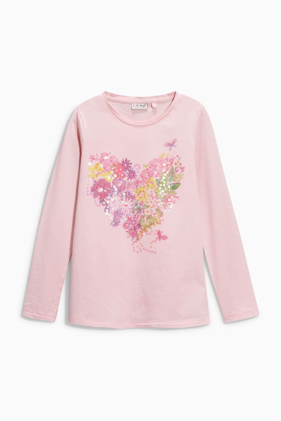 Bavlnené tričko s flitrovým srdiečkom, dlhý rukáv. Kód 387361.