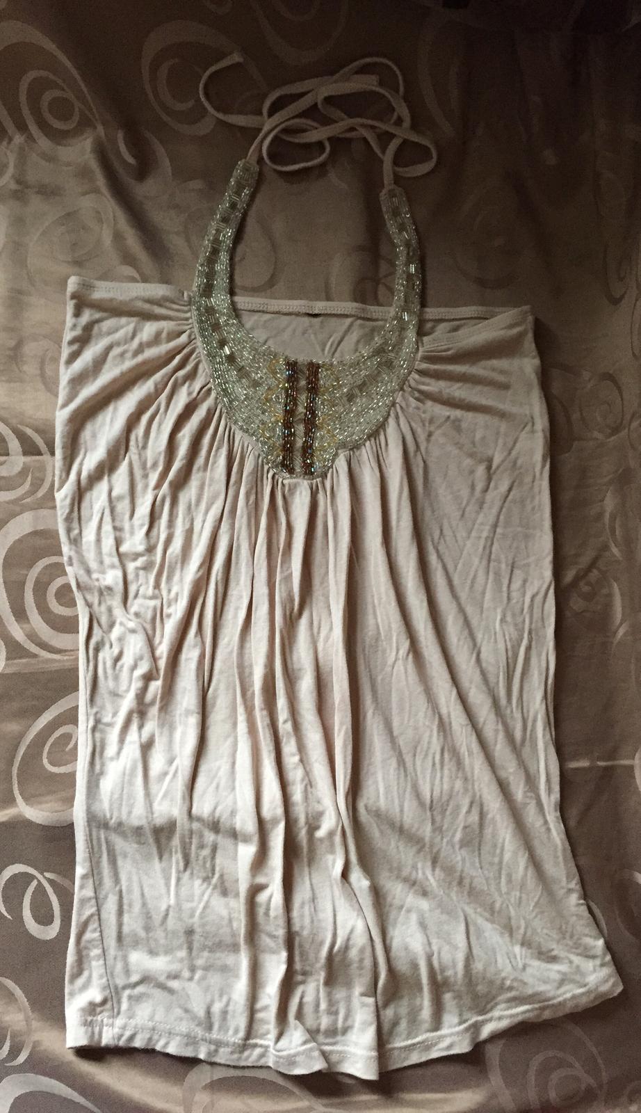 Malo nosene. Velmi zachovale a prijemneho materialu. Koralikova aplikacia okolu krku. Dlzka: 55cm, pas: 35cm.