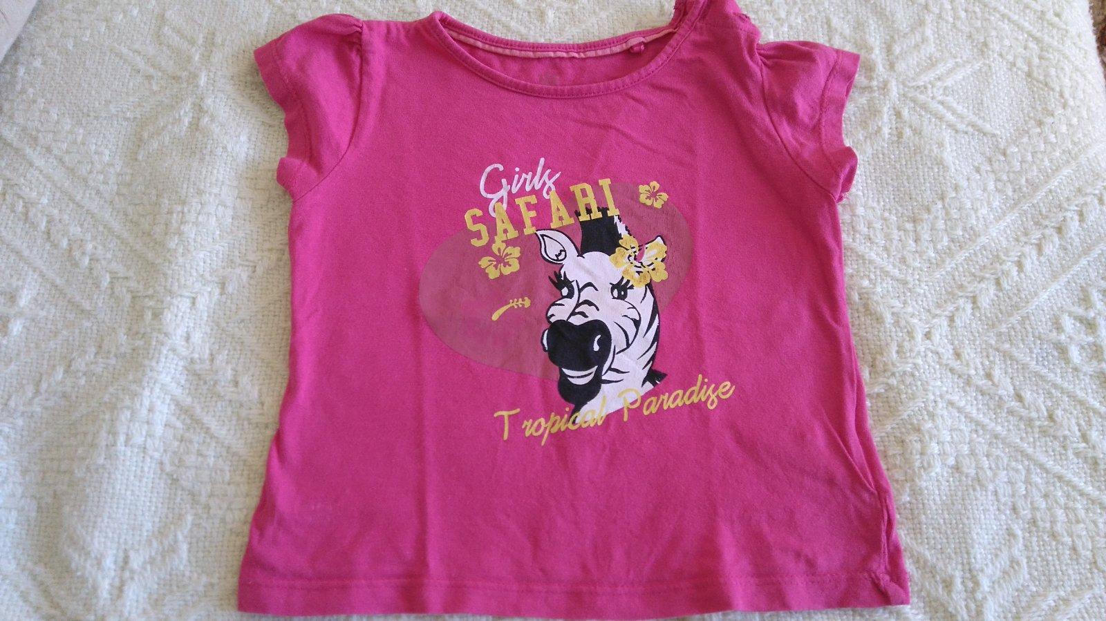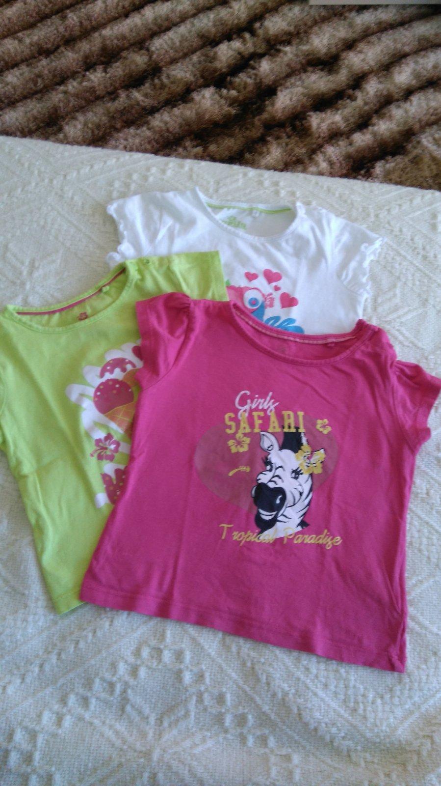 Predám tričká po mojej dcérke, na ružovom tričku je trošku popukaná potlač, ale inak nemajú tričká iadne fľaky, diery, či iné poškodenia. Predám iba spolu.