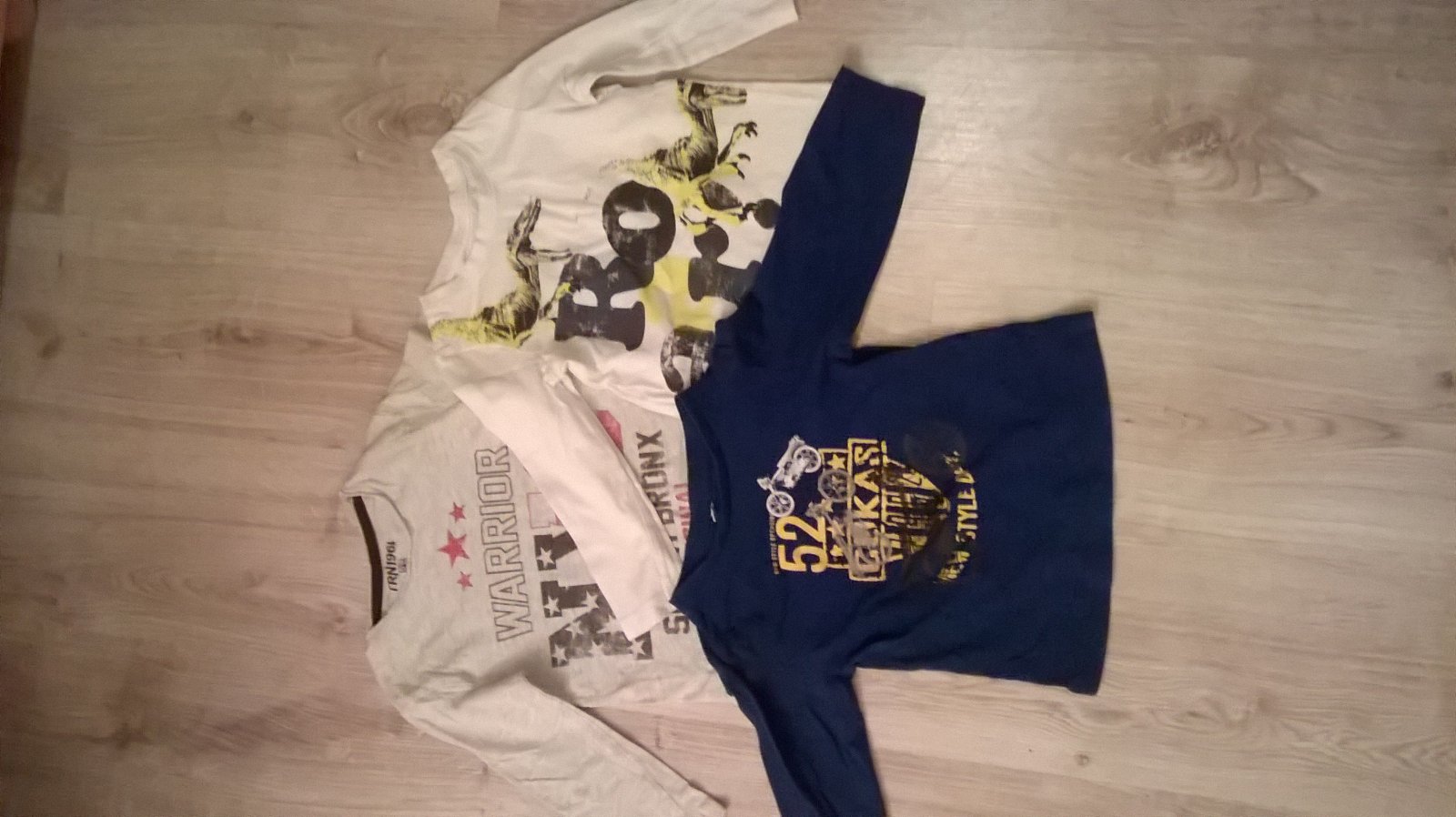 Sivé - moderný "odstrihnutý" lem, ktorý sa krúti dovonka. Vpredu nápis. Biele oblečené asi 5x, vpredu dinosaury, tmavomodré - natlačené motorky.