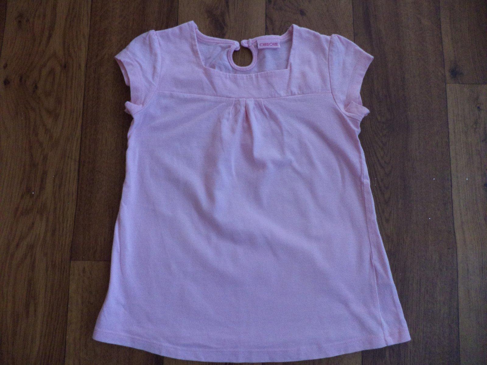 Predam pekne dievčenske bavlnene tričko ,v prednej strane sedlo s jemnym riasenim, na zadnej strane zapinanie na jeden gombik, dlžka 45cm kuknite aj dalsie moje inzeraty