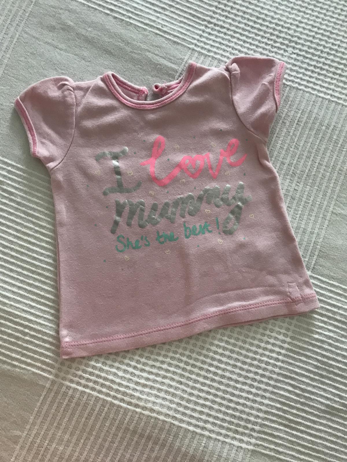 Ďievčenske tričko s nápisom značky George. Tričko pre dievčatko je s dlhým rukávom. Veľkosť 68, tj. 3 - 6 mes, tričko bolo nosené. Cena: 2 Eur / ks * Osobný odber Bratislava alebo poštou doporuče...