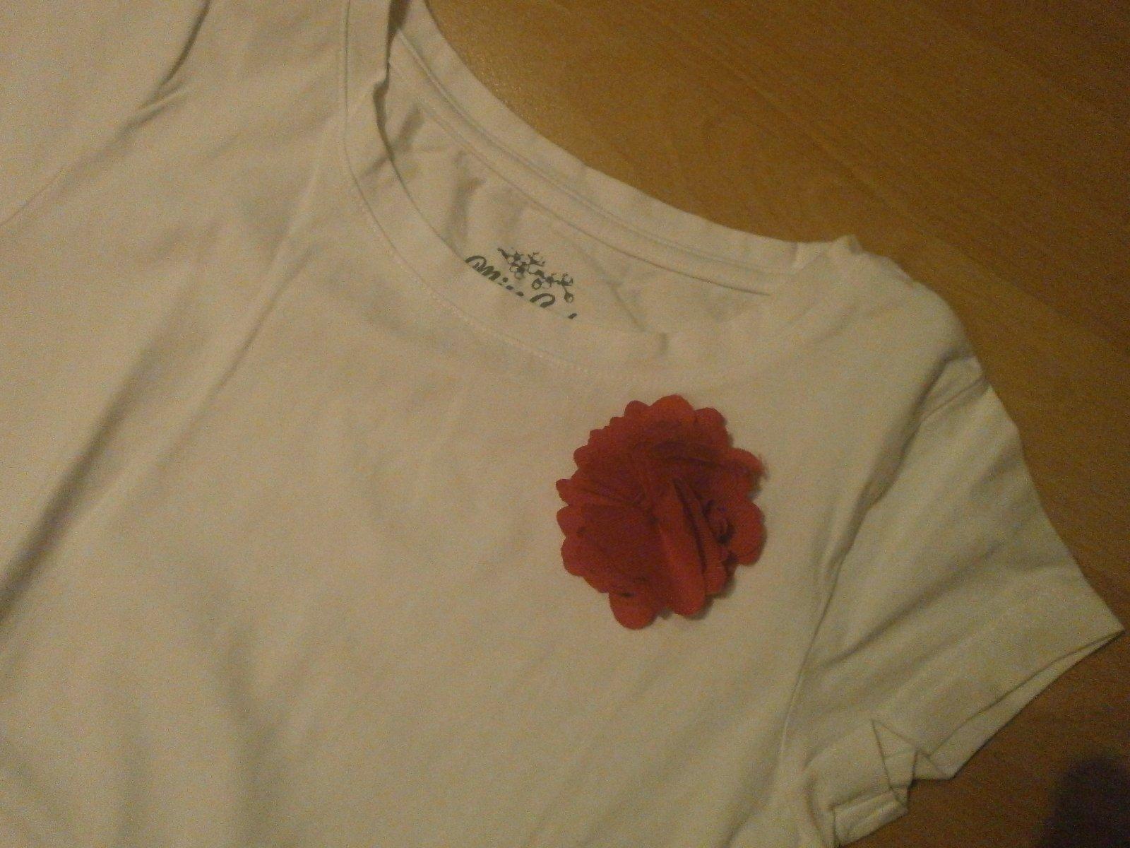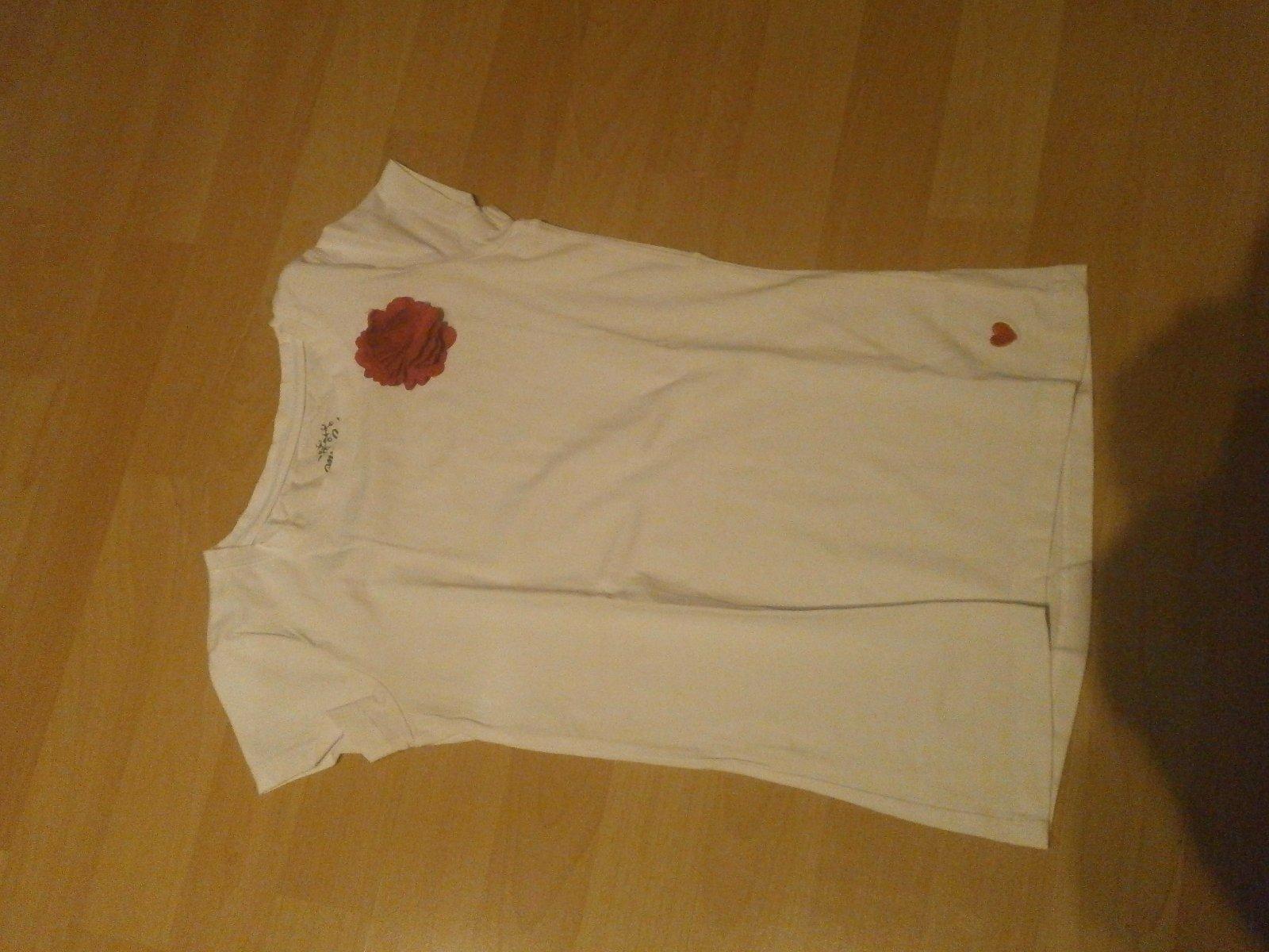 tričko. Na prednom diele prišitý červený kvietok a prispodu vyšité červené srdiečko. Veľ.146-152