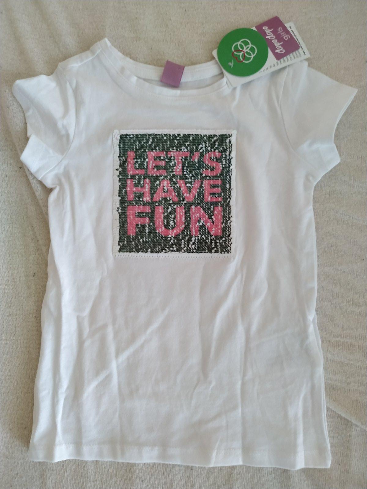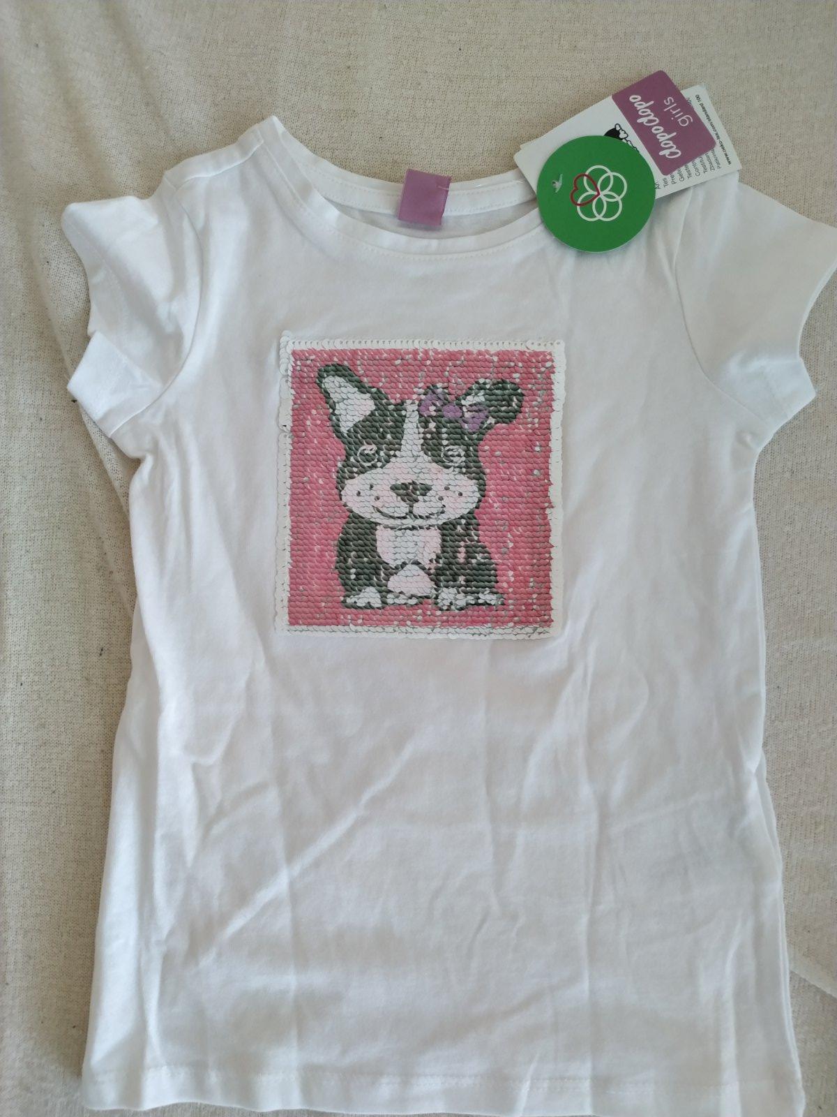 Krásne originálne tričko s meniacimi sa flitrami (buď motív "psík" alebo nápis "let's have fun")