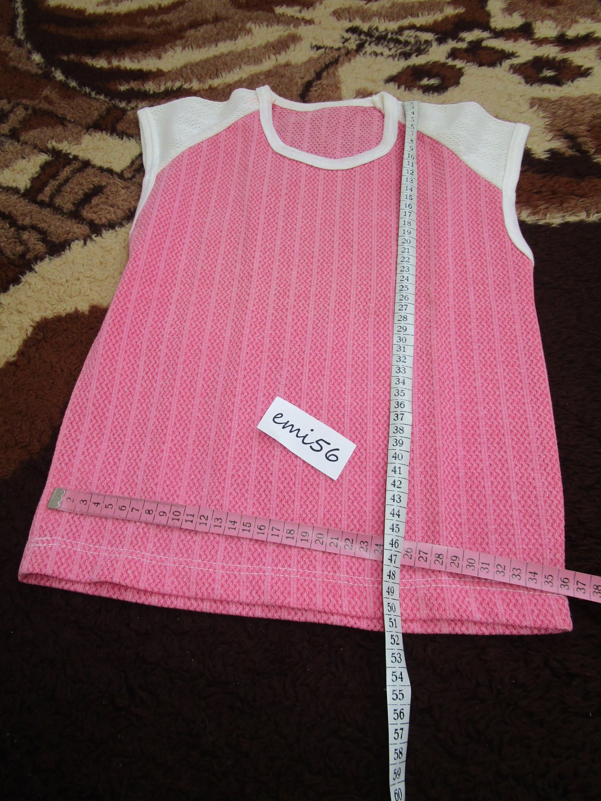 Tričko ružové, mierne dierkované, nenosené – len preprané po donesení z obchodu. Okrúhly výstrih, rovný dolný okraj.