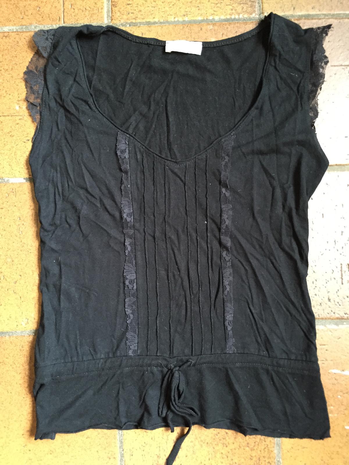 Velmi prijemny material, vystrih na vacsie Vecko ;) na bokoch sa da v strede stiahnut, cipkovane rukaviky ;) dlzka od ramena: 56cm, dlzka pod pazuchou: 38cm, sirka v pase: 36cm, sirka spodnej casti: 40cm,