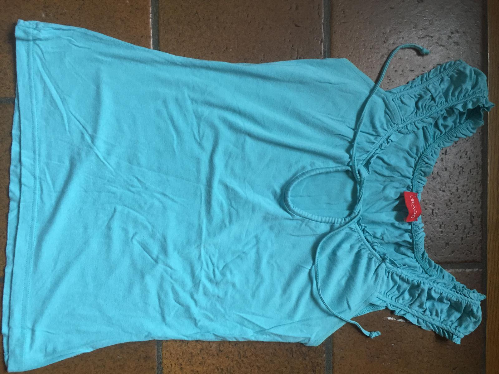 Velmi prijemny material, pekne na postave, prisposobi sa, vdaka vystrihu pekne ukaze dekolt, moznost nosit zaviszane ako aj odviazane ;) dlzka od ramena: 58cm, dlzka pod pazuchou: 37cm, sirka v pase: 35cm, dlzka spodnej casti: 40cm.