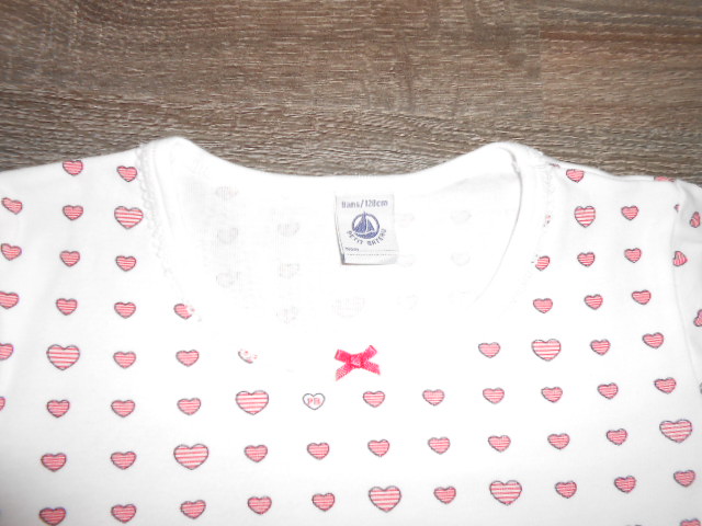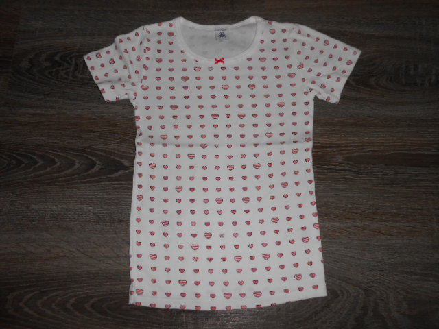 29. PETIT BATEAU biele tričko s kratkym rukavom so srdiečkami , tejto francuzskej značky , material je 100% bavlna, tato značka si potrpí hlavne na kvalitu materialov...velkost je 8rokov, 128, dlžka je 46cm,širka v podpazuší je od 30x2cm do 40x2cm