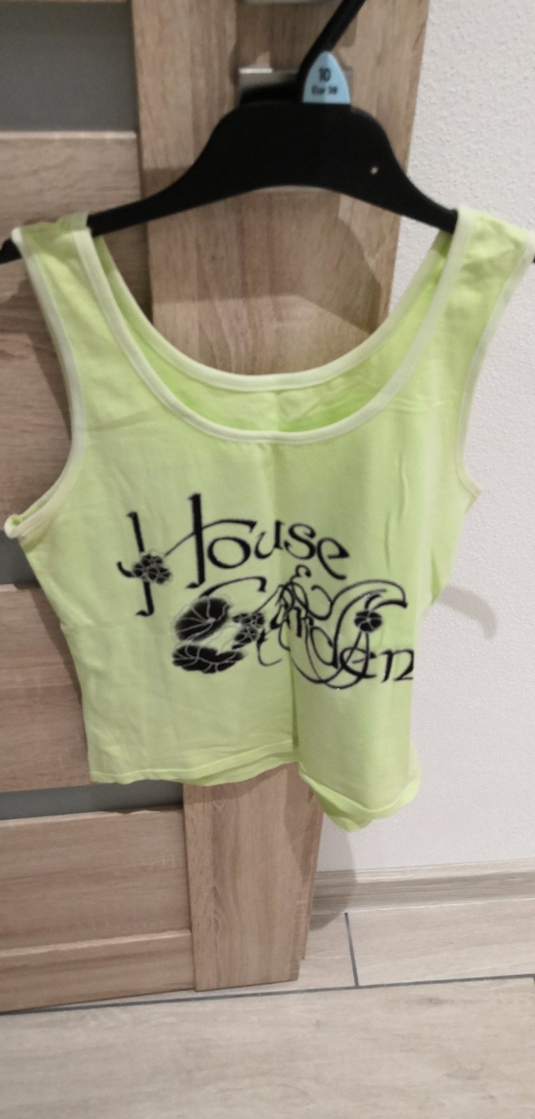 Predám žlté elastické tričko s trblietavým nápisom