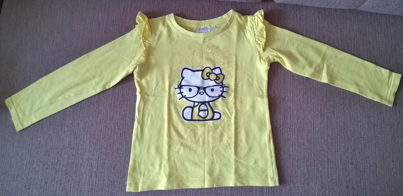 Predám nosené tričko s Hello Kitty. Tričko je na donosenie, ale stále bez dier a fľakov. Veľkosť cca 98,možno aj 104.