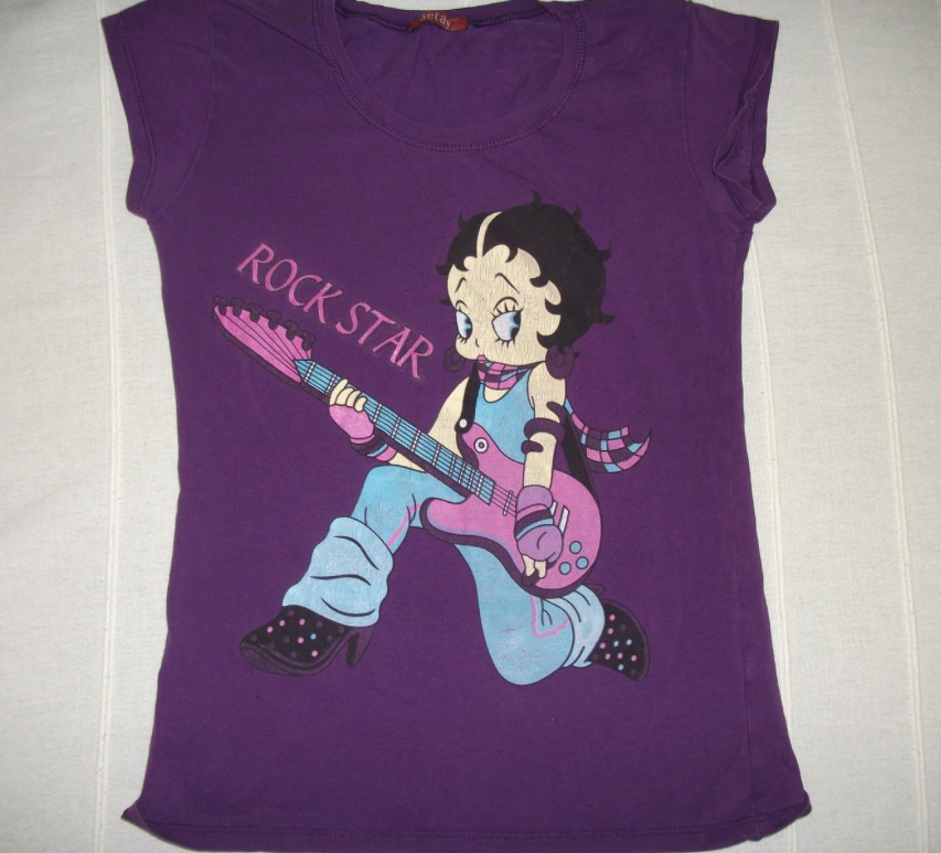 predám pekné tričko ,aplikácia troška popráskaná od prania ,inak je dobré bez žmolkou, 90% cotton,10% elastan , dl. 54 cm, šírka 36x2 cm