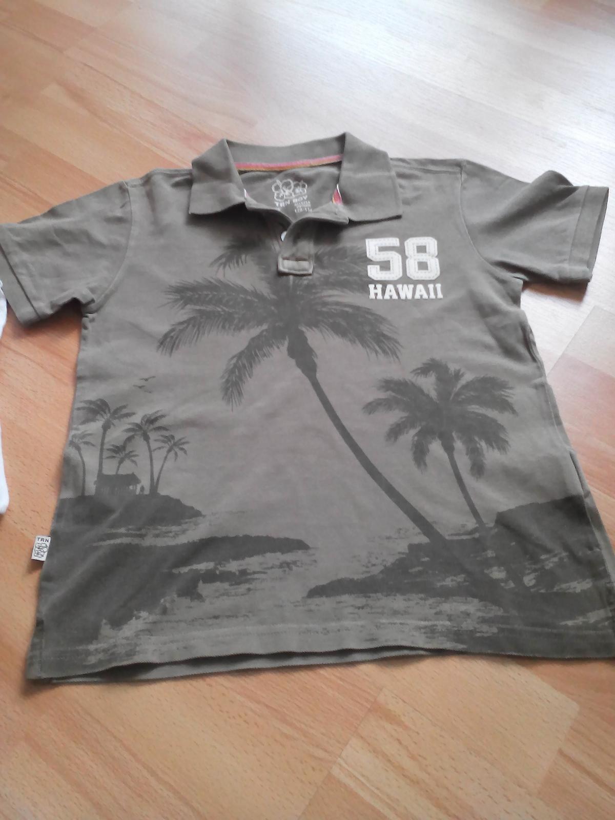 Veľmi dobrý stav! Chlapčenské tričko s krátkym rukávom a s potlačou, okrúhly výstrih, jemne elastické, pre 7-8 r. ROZMERY: dĺžka meraná len vzadu:48,5cm,dĺžka rukáv od krku:21cm,dĺžka rukáv:14cm,...