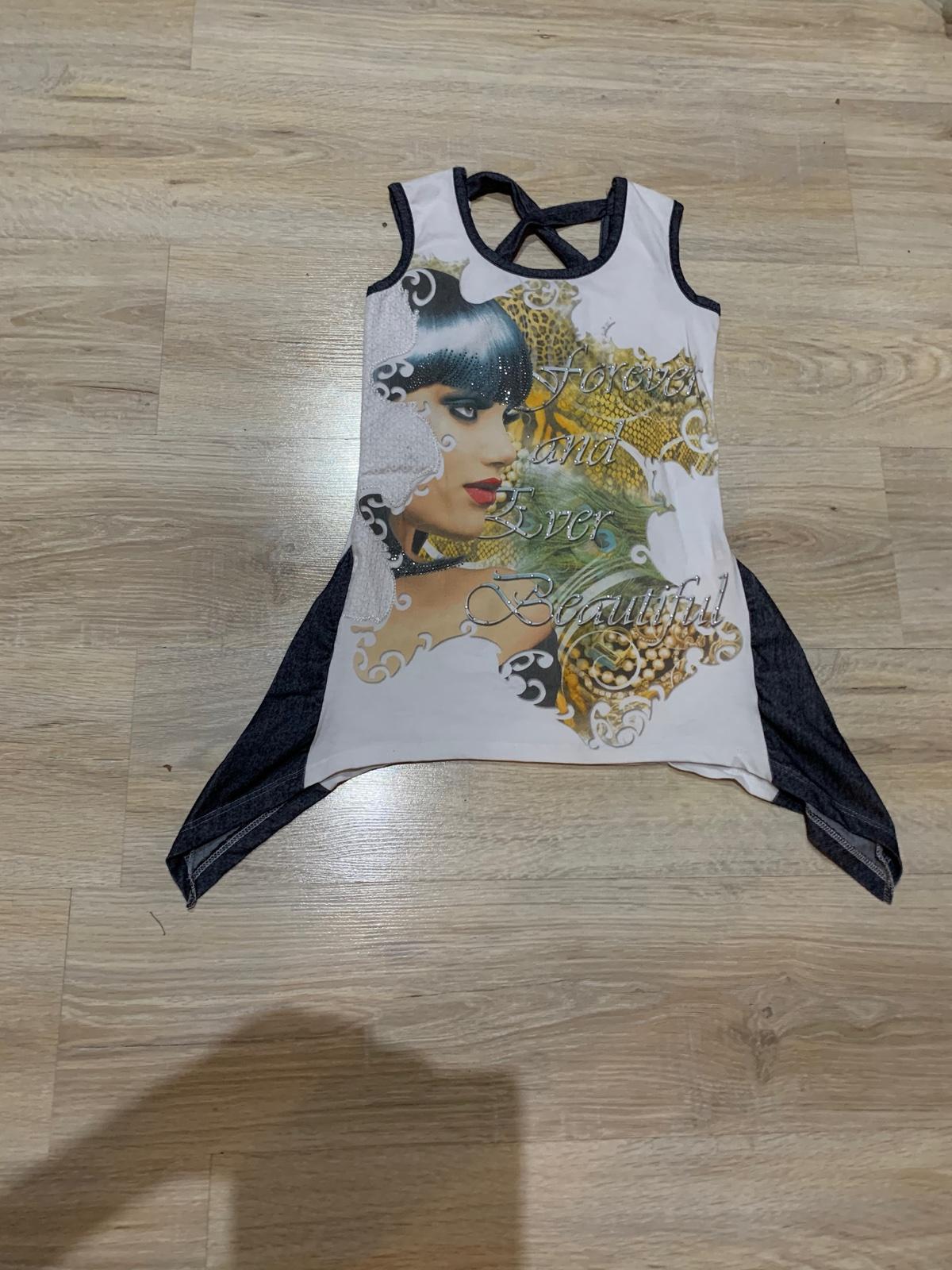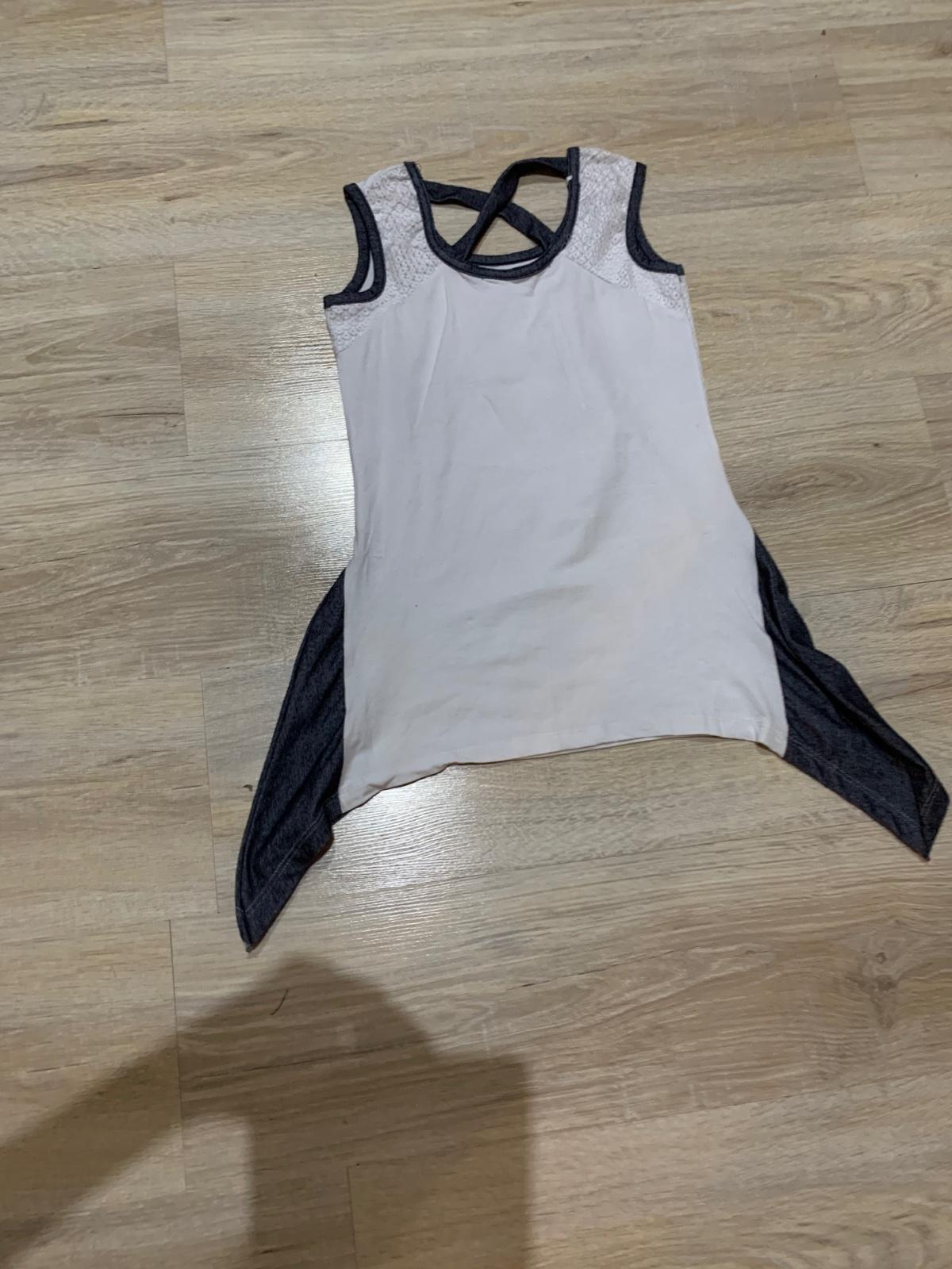 Predám milú tuniku nosena ale suoer poslúži od ramienka dolu63cm merane po kratšiu časť šírka37cm posta1,10 obyčajne spal skr hne hor