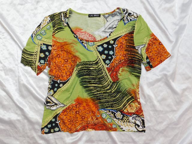 Luxusne damske tričko,z jemneho upletu,s potlačou.96%viskoza,4%elastan.ako nove. se17