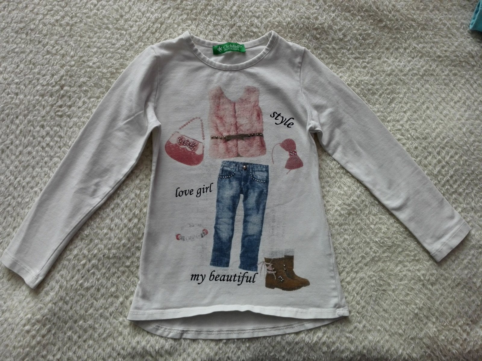 Predam krasne kvalitne tricko s nadhernymi aplikaciami, s trblietavymi kamienkami pre slecnu. Malinko nosene, vo vynikajucom stave. Rozmery: celkova dlzka 47cm, rukav dlzka 39cm, hrudnik 33x2cm v klude.