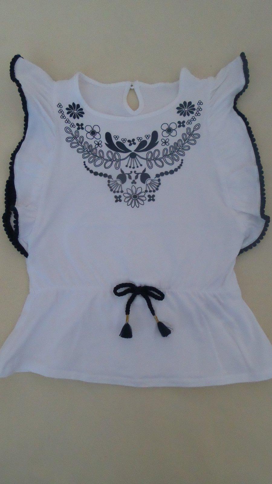 Nosené, bez poškodení. Dĺžka 44 cm,šírka pod pazuchami 33 cm. Veľ.122/128 Mám 2 kusy.