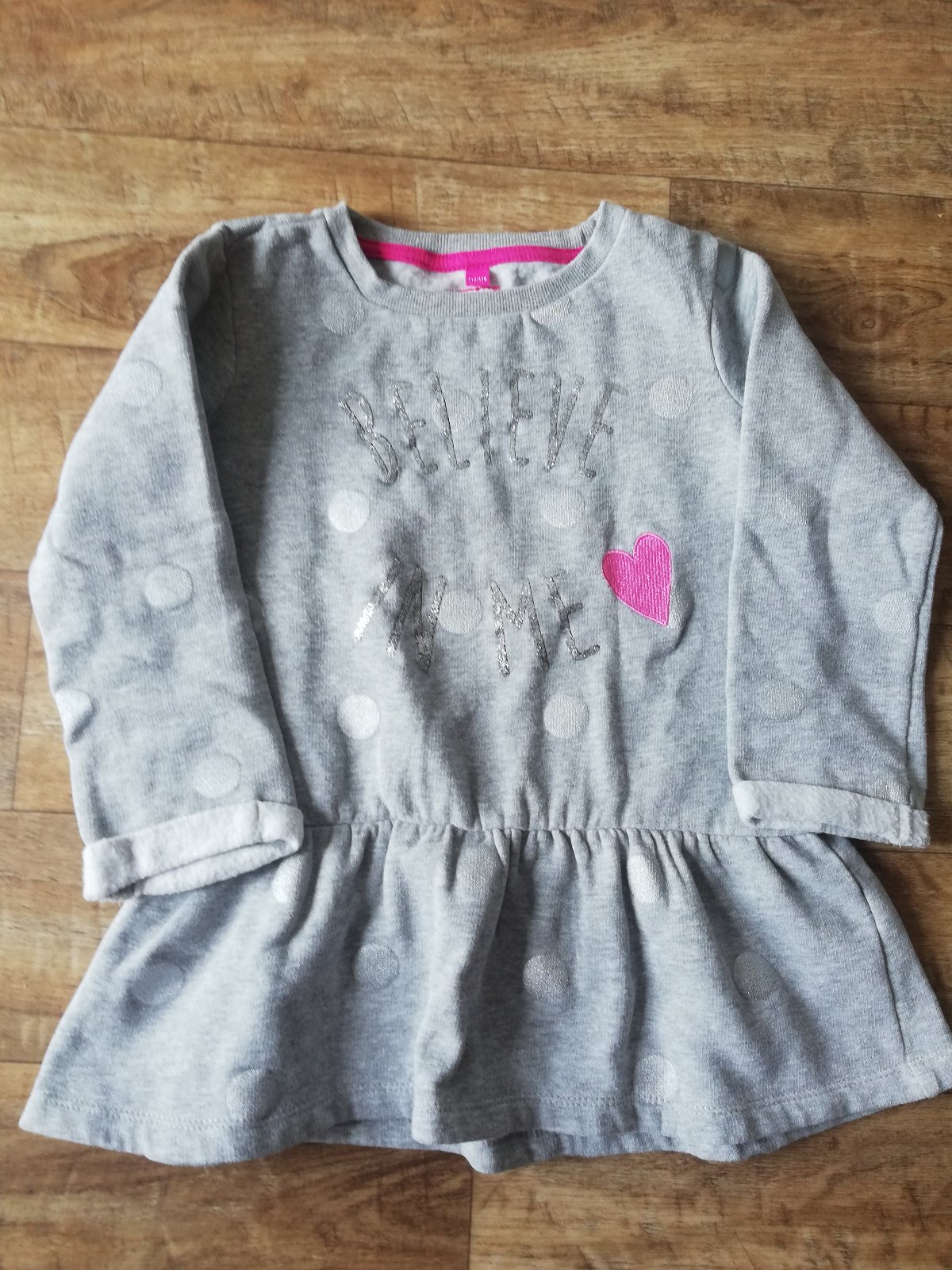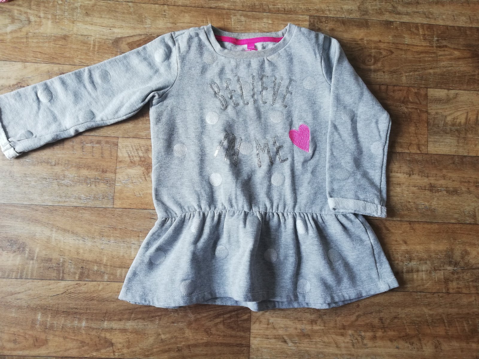 sivá tunika so striebornými guličkami a strieborným nápisom, vyteplená, č. 110/116, v top stave - oblečená 1x