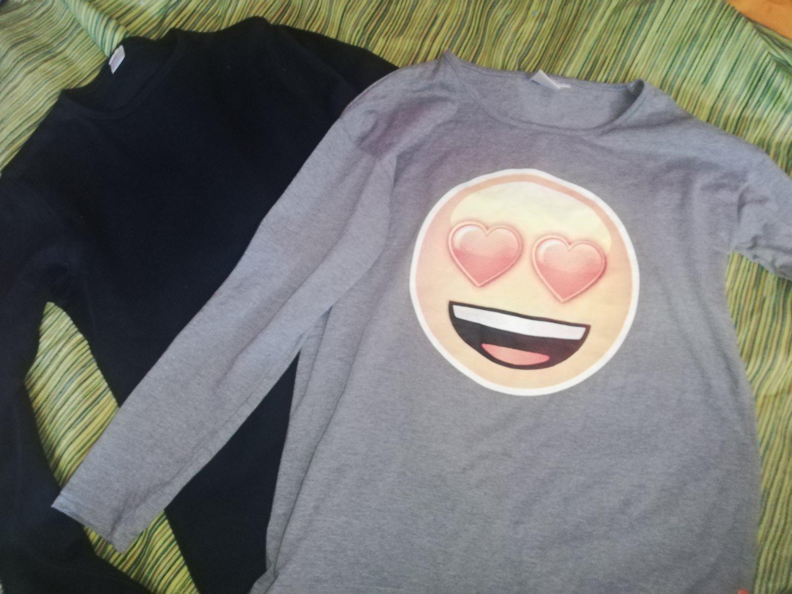 Ponúkam na predaj asi 2-krát oblečené tričko s flitrami v tvare srdca. Rozmery: šírka 2 x 44 cm, rukáv 58/46,5 cm a celková dĺžka je 60 cm. Zloženie 69% PES, 30% Viskóza a 1% trblietavé nite. Bez p...