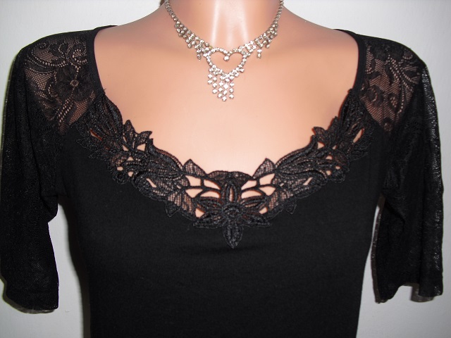 predam nadherny cierny topik, vyborny stav, detailne na poprsi prepracovany zdobenim a rukaviky cipkovane. velkost na s.