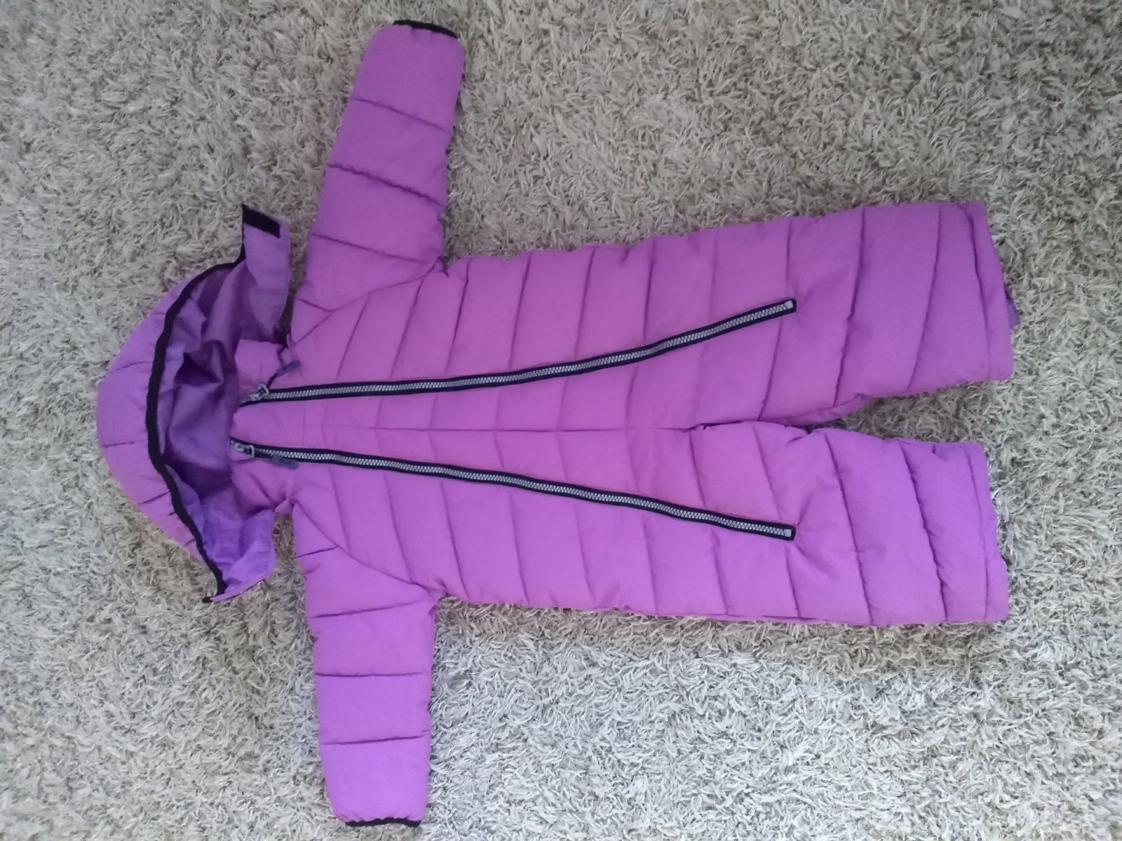 Kombinéza vo výbornom stave, veľkosť 86/92. Odnímateľná kapucňa. Bez poškodení. Rozmery dĺžka od stojačika 76cm, od ramena 69cm, šírka pod pazuchami 36cm, rukáv od krku 36cm