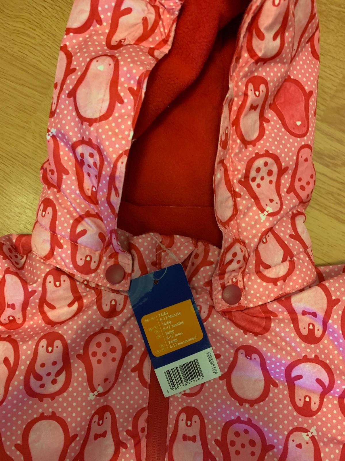 Použitá dievčenska zimná kombinéza. Veľmi pekný stav. Kapucňa sa dá dať dole. Značka: Lupilu Veľkosť 74-80. Popozerajte reálne fotky s mierami.