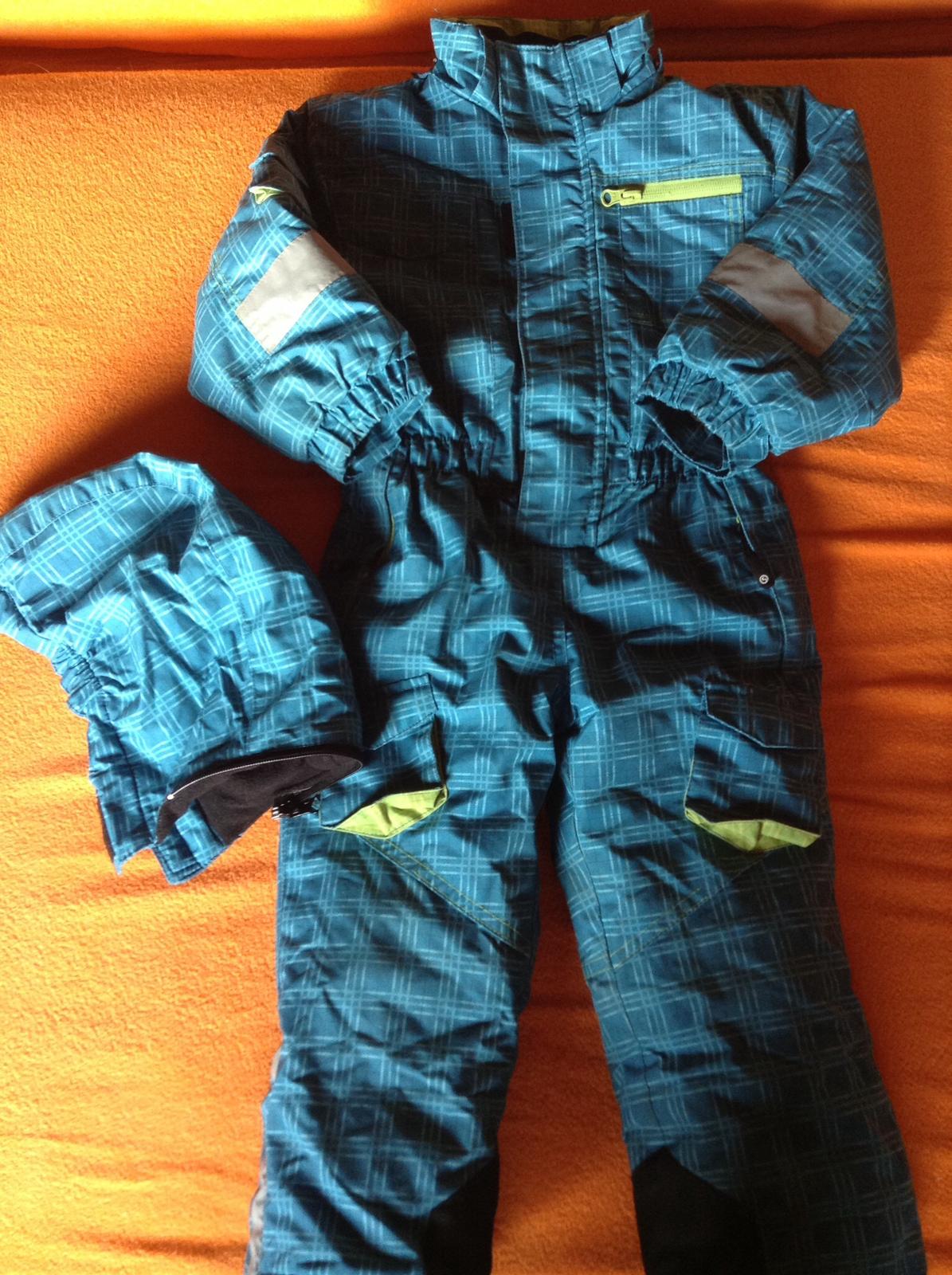 farba krasna tyrkysová ako na 1. foto. super stav, veľkosť odhadom 86/92, tchibo, vnútri flis, hrubý, zateplený, vhodný na zimu, reflexné prvky, spevnené kolena a zadok, odnimatelna kapuca