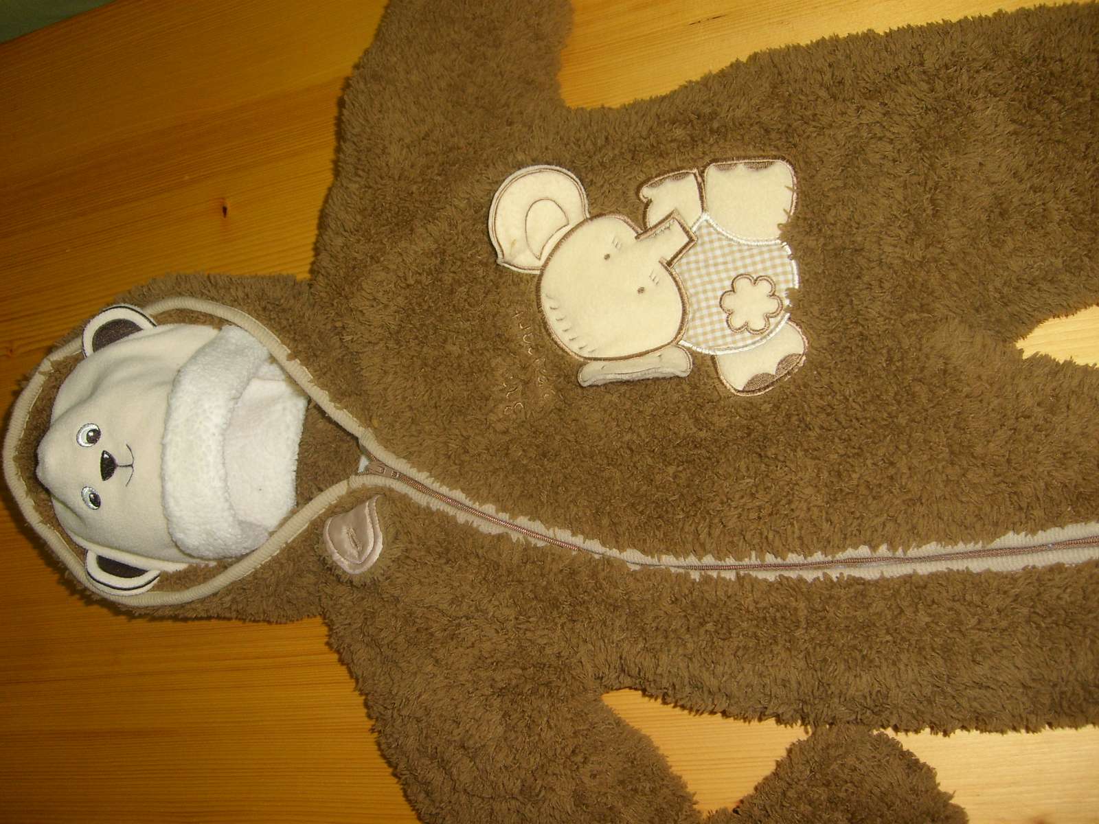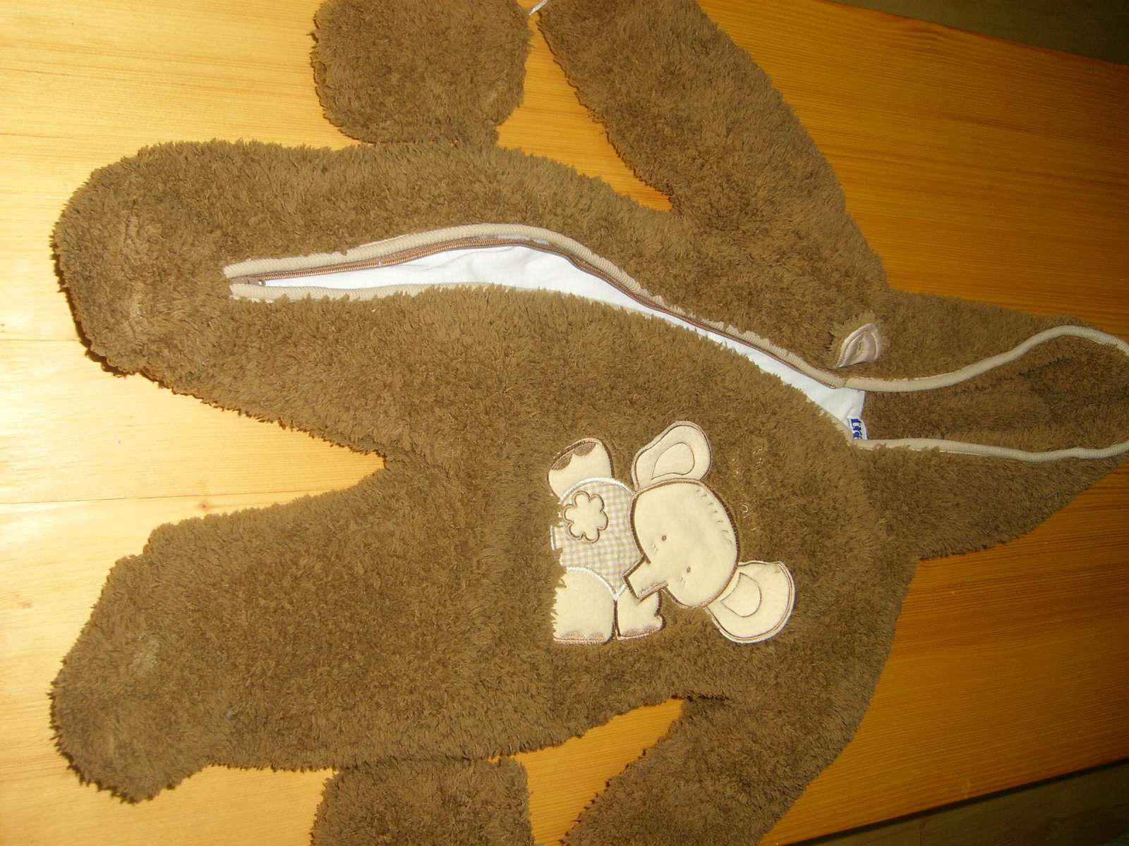 Čokoládovo hnedý overal, ne-nosený. Veľkosť písaná na 3 mesiace. Predajná cena bola 30 €. Rukavičky sa dajú vybrať.