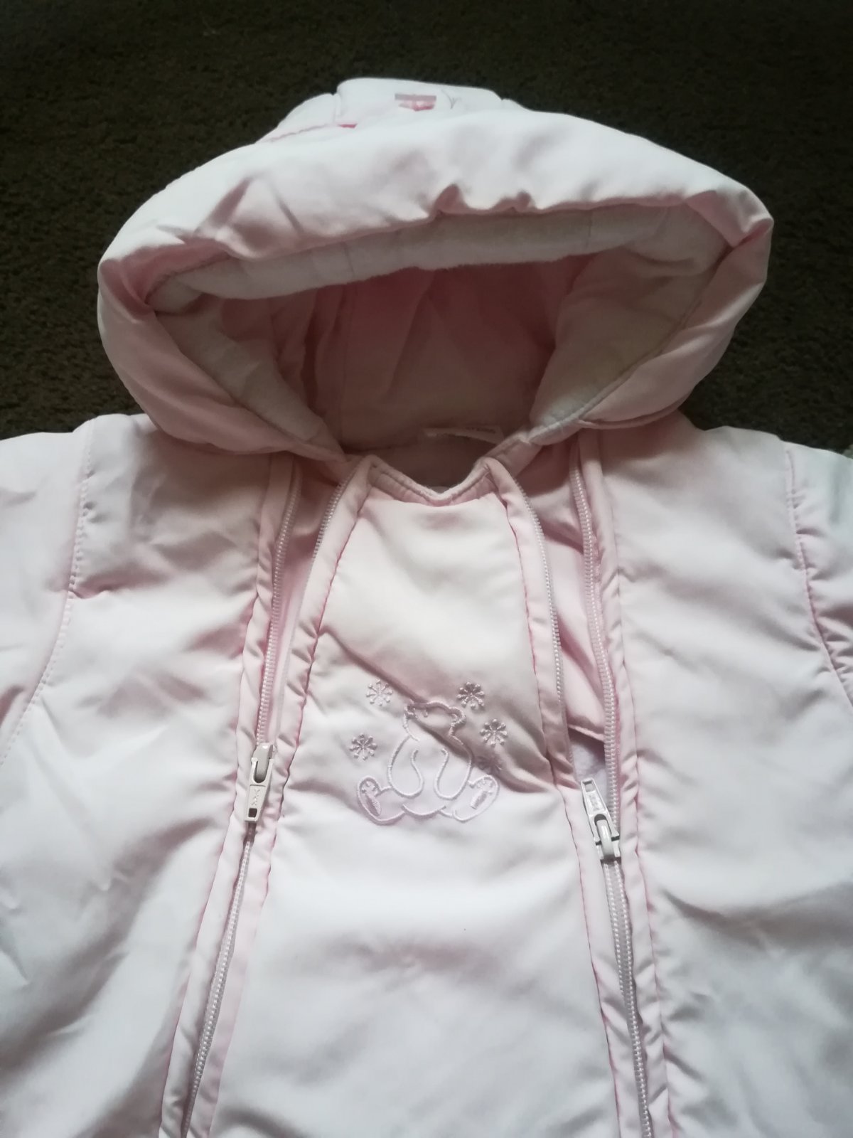 Krásny zimný overal, nosený v super stave, vidieť jedine na vnútornej strane keďže je bavlnená, inak veľmi pekný, praktické rozopunanie k obom nôžkam. Rukáv od krku 25cm, dĺžka 56cm, šírka 34cm