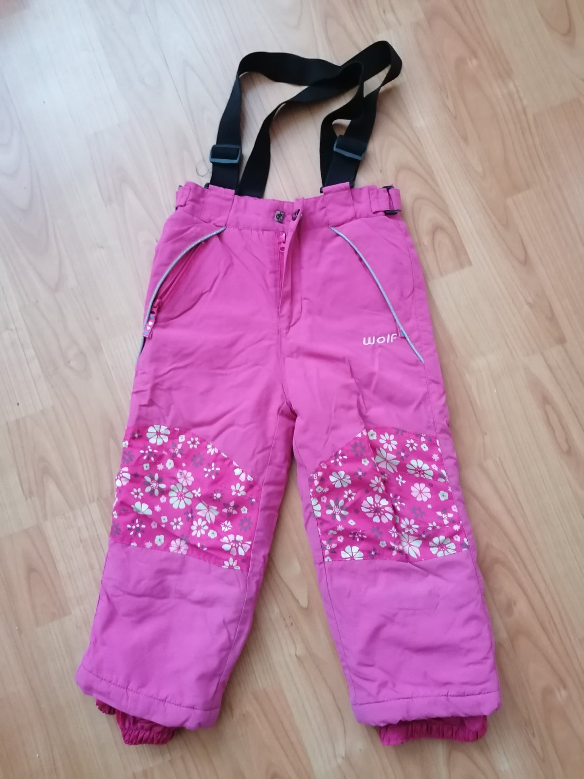 Dievcenske oteplovacky na traky. Velkost 86/92. Vzadu suchy zips zasity, lebo sa nam odopinal, ale staci odparat a bude sa to dat opat nastavovat.