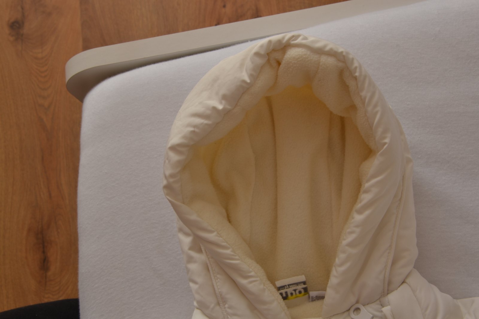 Zo spodnej strany kapucne keď sa ovinie je malá tmavá čiarka, je to asi chyba látky, také sme už kúpili.